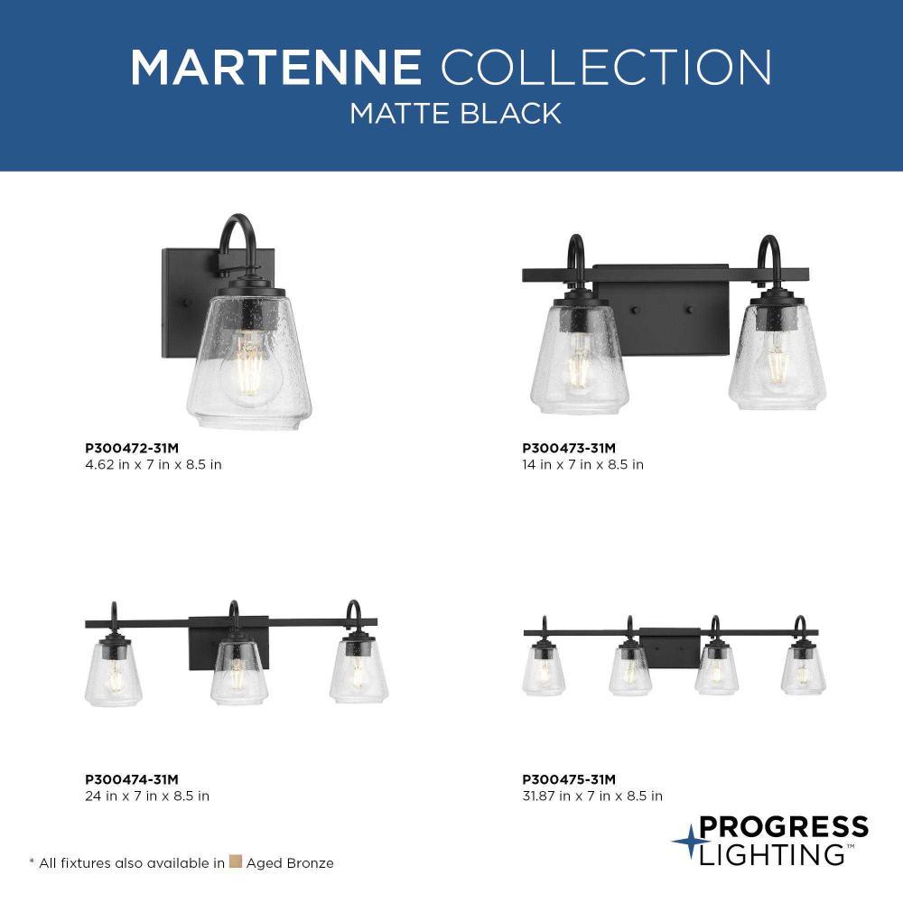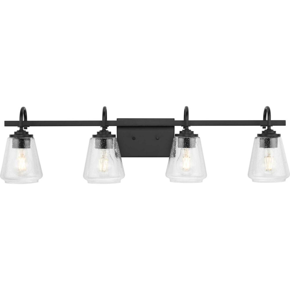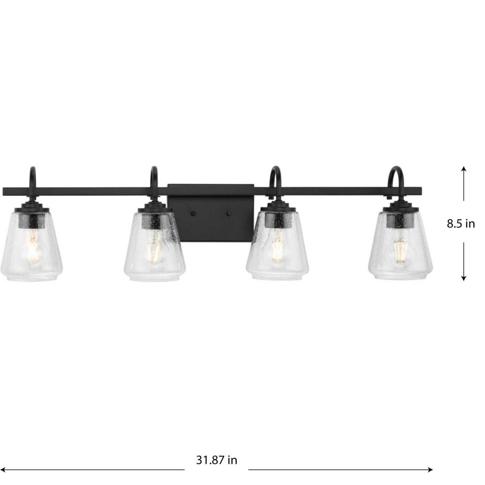 The Martenne Four-Light Vanity Light has a simple, substantial style. Seeded glass shades with an elegant flare complement the rustic modern design.Lovely illumination is cast from this versatile fixture that can be mounted up or down to fit your design intent.