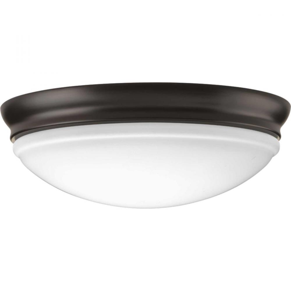 The 13-1/2 inch LED Flush mount offers traditional form factor for ambient illumination. The etched glass dominates the design with its distinctive and sculptural bowl. The elegant glass is paired with a metallic frame in a Antique Bronze finish.