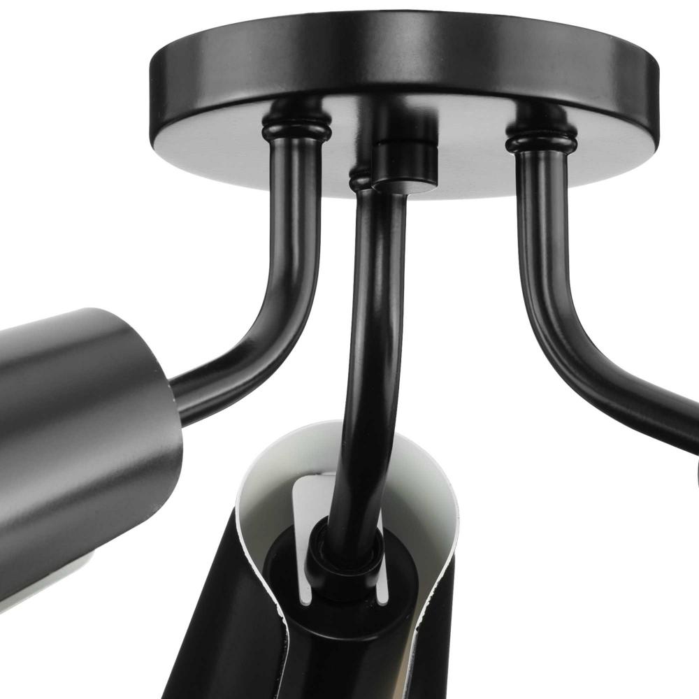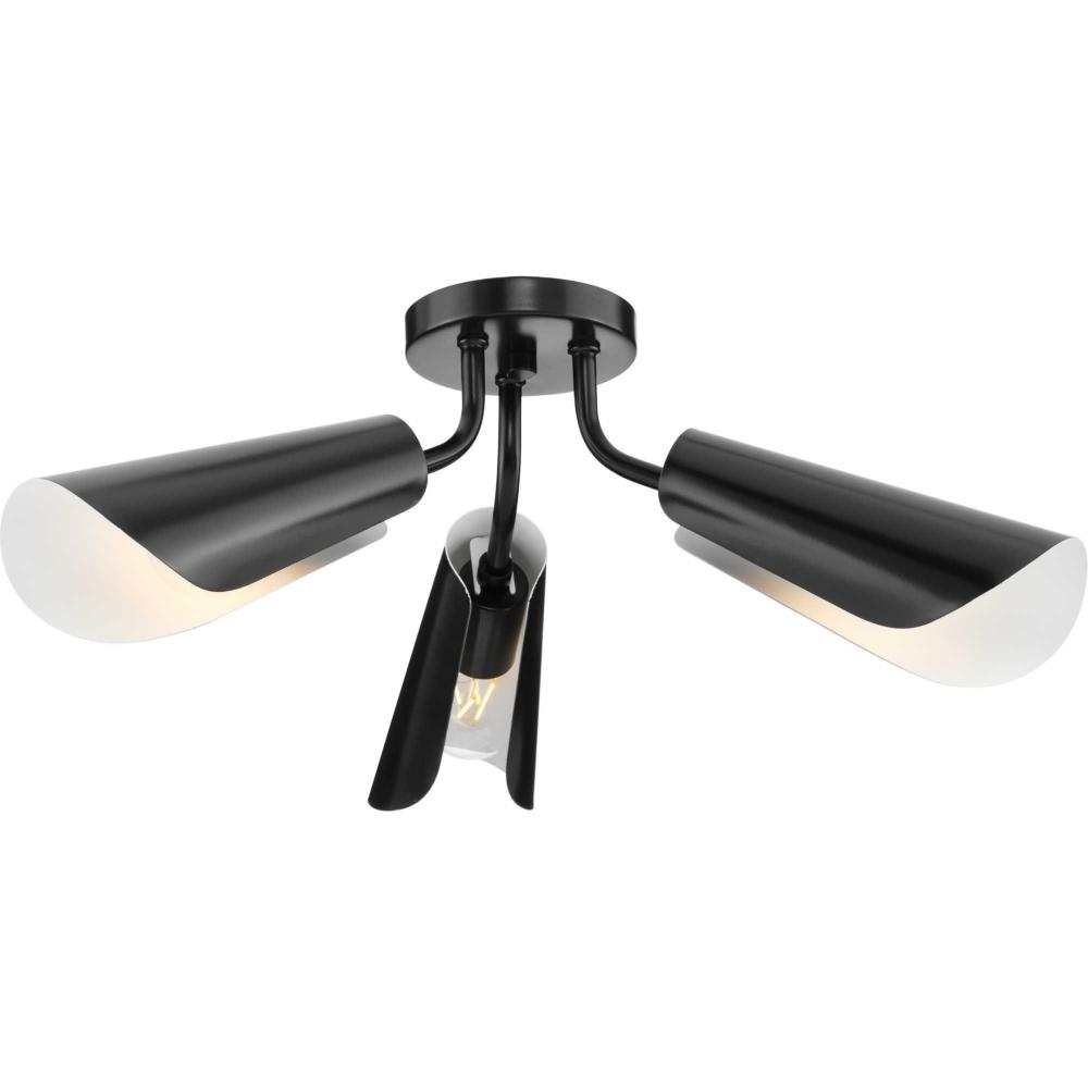 Cornett trumpets its arrival on the scene with a blending of timeless modern design. The Close-to-Ceiling fixture features dynamic angles finished in Matte Black, offering a dramatic counterpoint to the softly sculpted curves of the matching metal reflector shades.Light is directed out and downwards from its unique, curved construction.