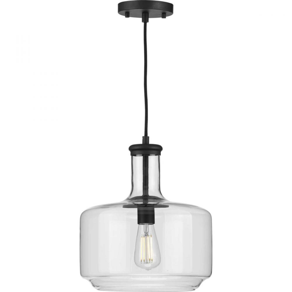Introduce A Pop Of Personality Into Your Home With This Pendant. A Round Ceiling Plate Coated In A Black Finish Anchors The Pendant In Place As The Light Source Hangs Below. A Bottle-Inspired Clear Glass Shade Adds A Twist To A Simple Industrial Style That Brings This Light Fixture'S Vintage Charm To The Forefront Of Your Home'S Lighting Design.