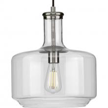 Introduce a pop of personality into your home with this pendant. A round ceiling plate coated in a black finish anchors the pendant in place as the light source hangs below. A bottle-inspired clear glass shade adds a twist to a simple industrial style that brings this light fixture's vintage charm to the forefront of your home's lighting design.