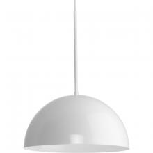 The cord hung pendant has an elegant metal dome, casting light generously from within a white interior circular open shade