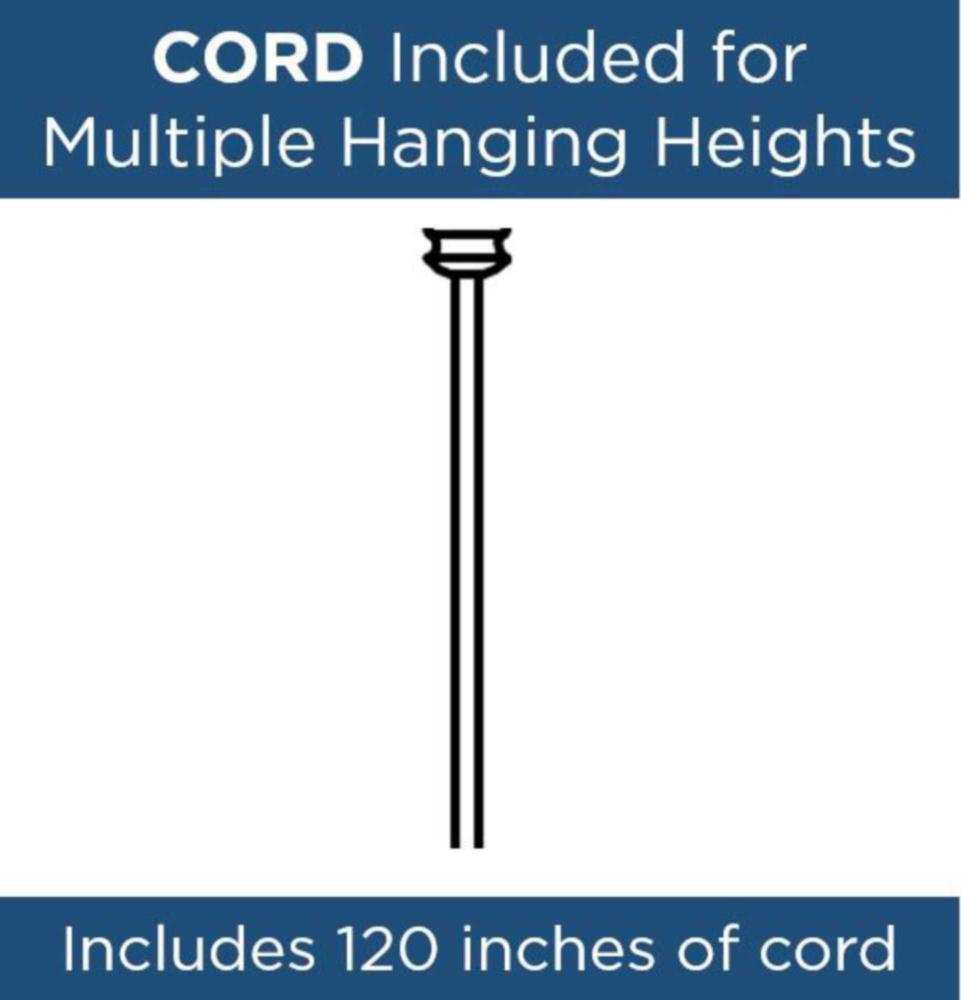 Includes 120 in of black cord for a variety of ceiling heights and can be used on a sloped ceiling