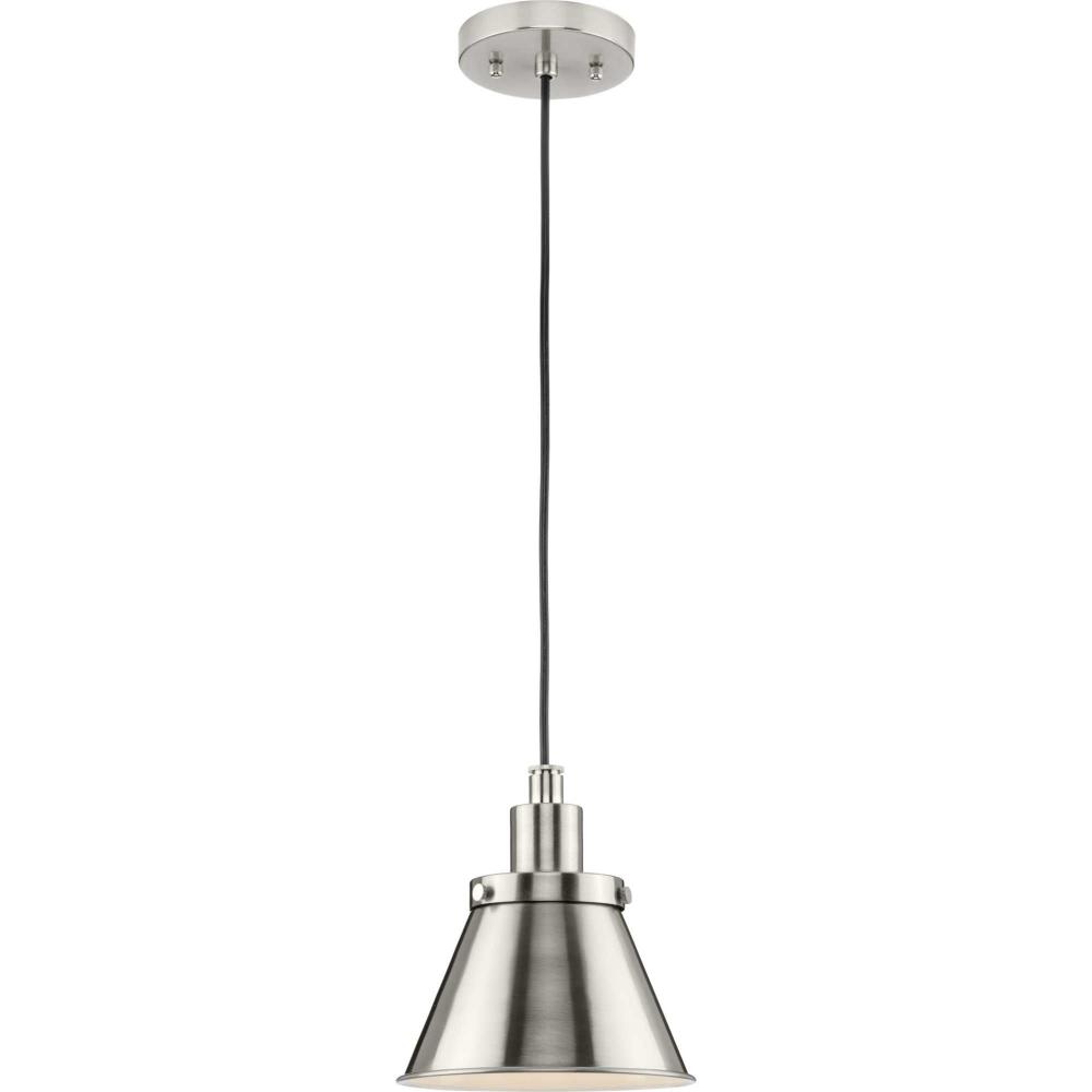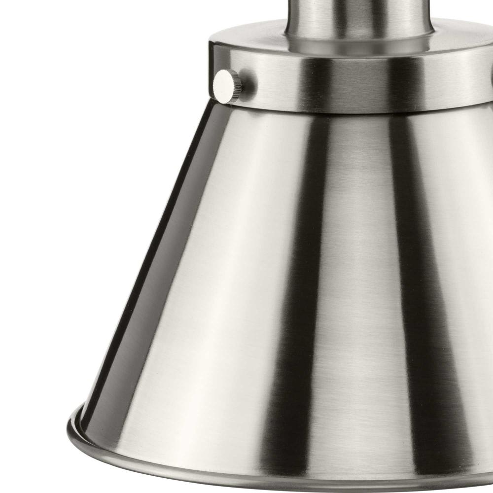 The light is coated with a subtle brushed nickel finish, complimenting modern designs