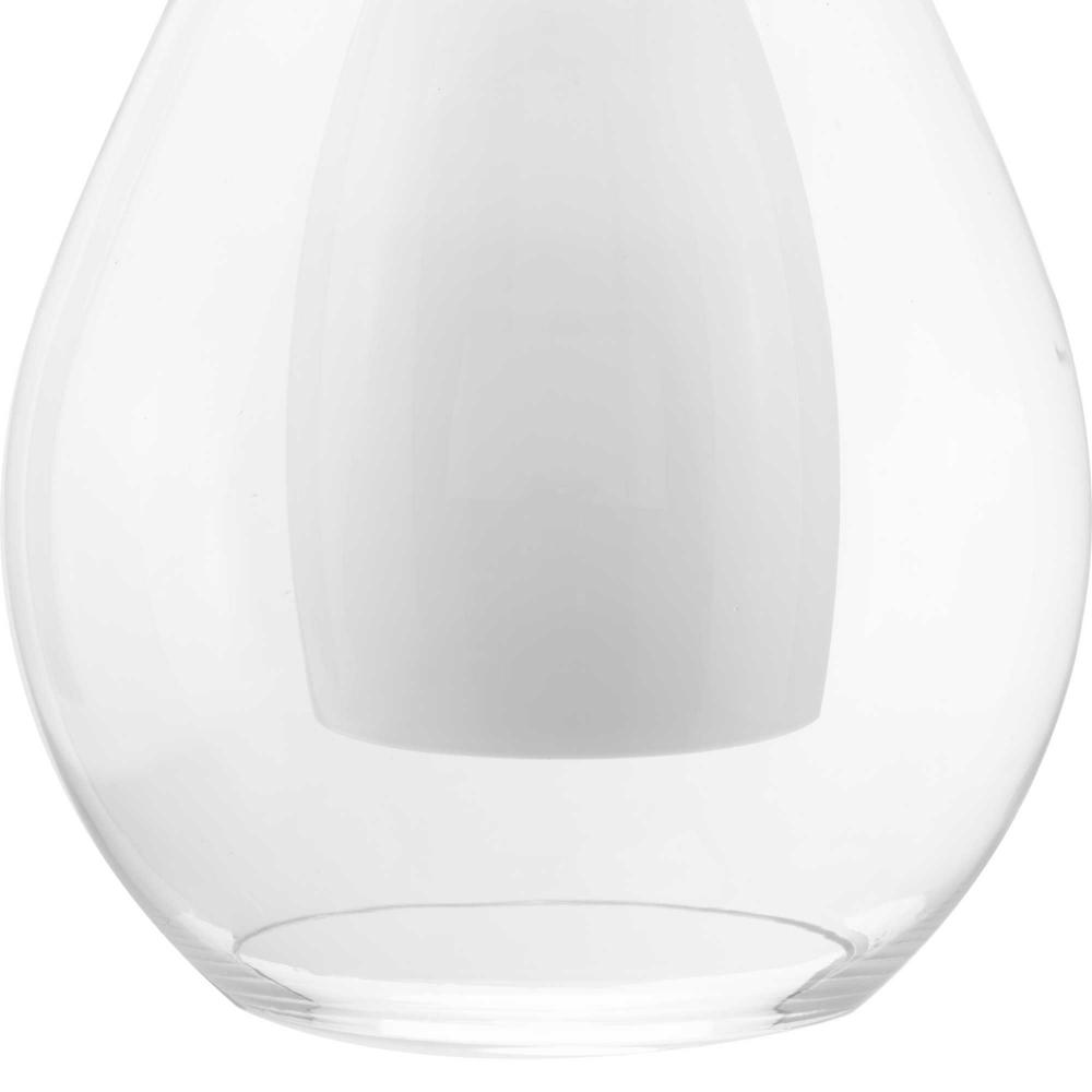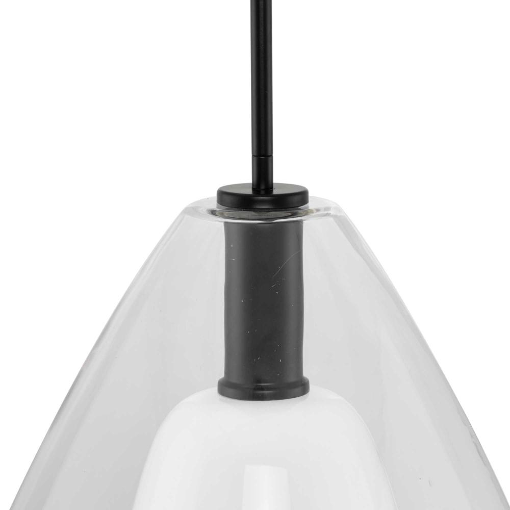 The large Carillon Pendant commands attention with its impressive scale and gleaming surface. An impressive clear bell-shaped glass shade surrounds a white opal diffuser suspended by hardware finished in crisp Matte Black, creating a warm and inviting ambiance.This versatile pendant is slope ceiling adaptable and stem hung with several lengths of stem included, allowing for easy customization for your home's ceiling requirements.