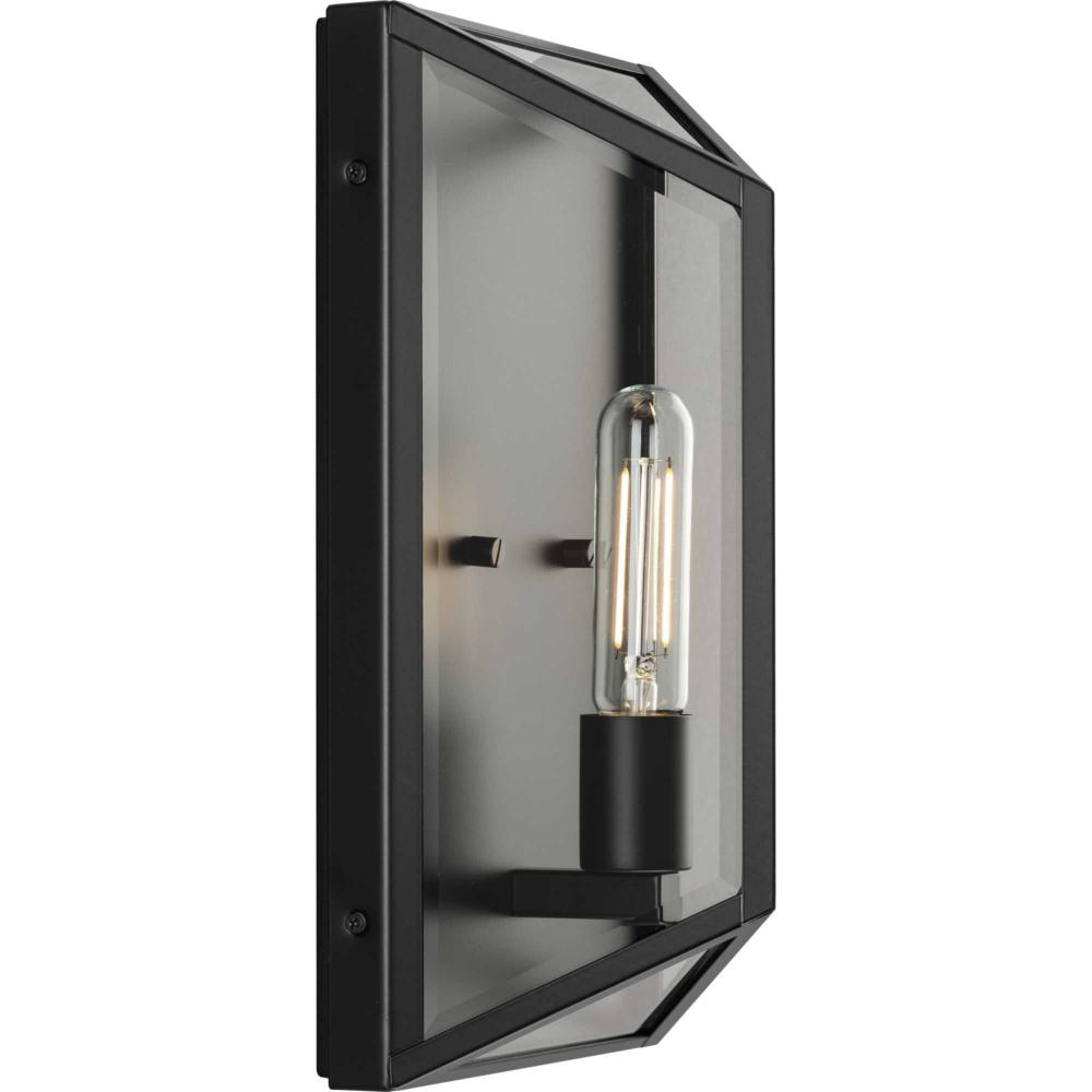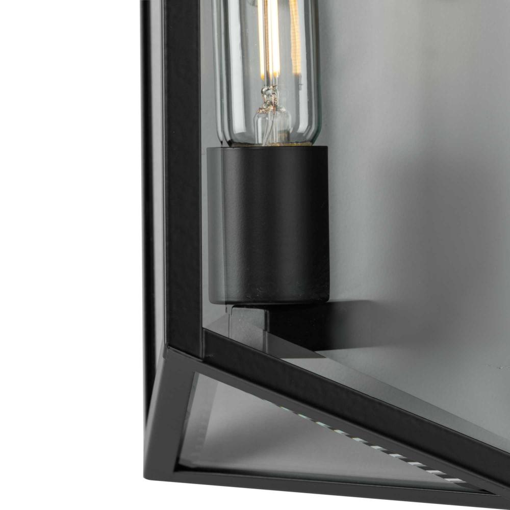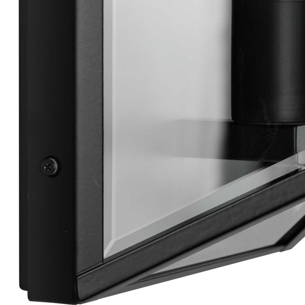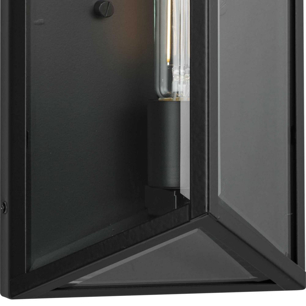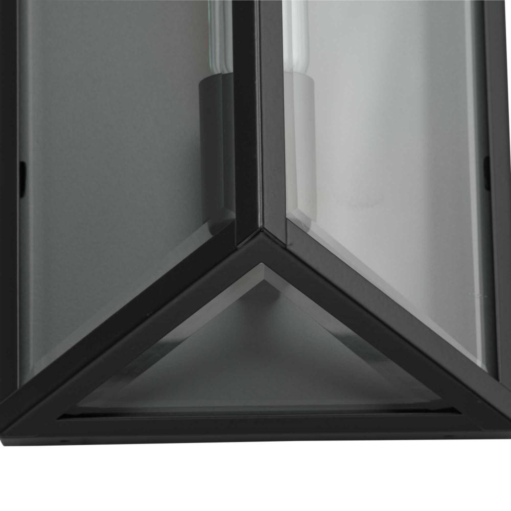 The Bristol Medium Outdoor Wall Light is a synthesis of vintage and modern styling. The geometric design is composed of angular clear glass elements that perfectly frame the vertical lights.Its unique frame is finished in crisp matte black. A soft glow emanates from clear beveled glass panels.