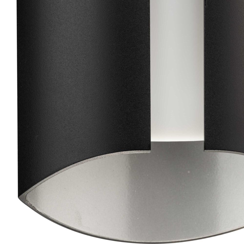 The light's cylindrical frame is finished in classic black