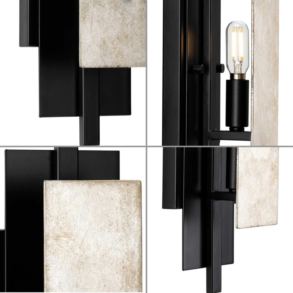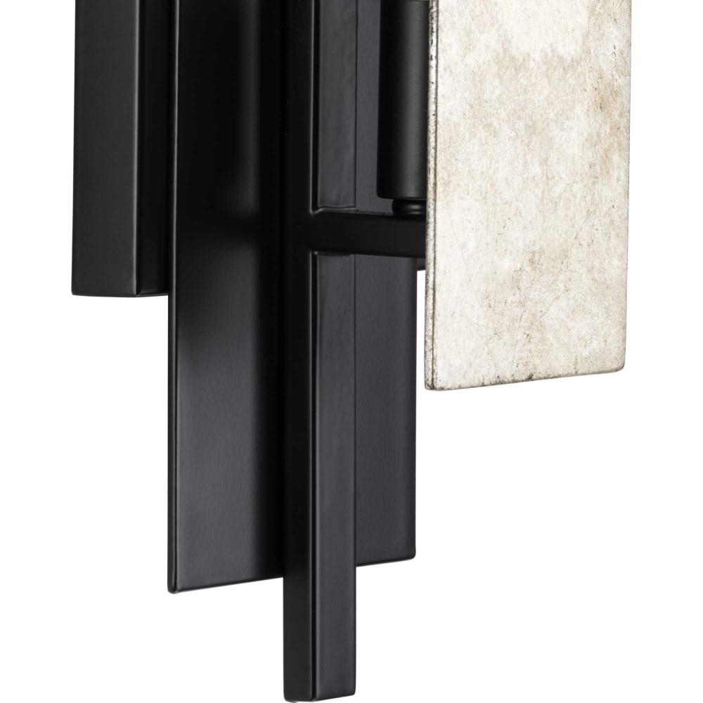 Raise the bar on contemporary design with Lowery. Layered rectangular shields coated in a matte black iron finish are artistically combined with distressed antique silver leaf panels against a black frame. Light sources glowing from inside the structure cast a shimmering reflective illumination that highlights the beautiful contrast between light and dark. Lowery delivers a stately ambient light to dining rooms, bedrooms and living rooms in luxe industrial, contemporary and rustic modern settings. This fixture is part of the Progress Lighting Design Series, a lighting collection offering fashionable styles and affordable luxury lighting for the home.