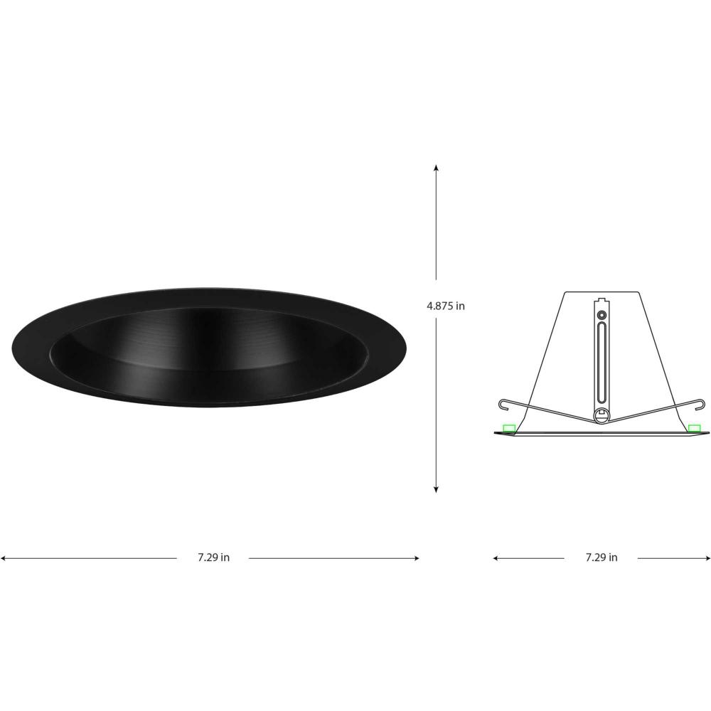 The 6 in. Open Trim finished in Black offers one of the most popular recessed downlighting solutions. The single-piece aluminum construction eliminates light leaks around the flange and allows it to cover irregular ceiling openings. The smooth surface of the reflector offers a classic look and maximizes lamp output, producing more light. The socket mounts to the trim for optimum performance and consistent lamp position. The integrated torsion springs force trim to fit snugly against the ceiling, providing a secure trim installation and minimizing air leak. UL-CUL damp location rating makes this trim ideal for use in a variety of room settings in conjunction with 6 in. new construction or remodel recessed housing.