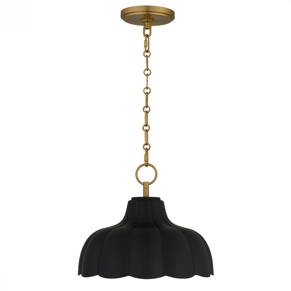 Bathe your space in the warm, golden glow of the Leanne Pendant Light—a timeless piece where classic form meets modern charm. With its gracefully contoured metal shade, the Leanne is finished in a rich matte black that exudes quiet sophistication. Inside