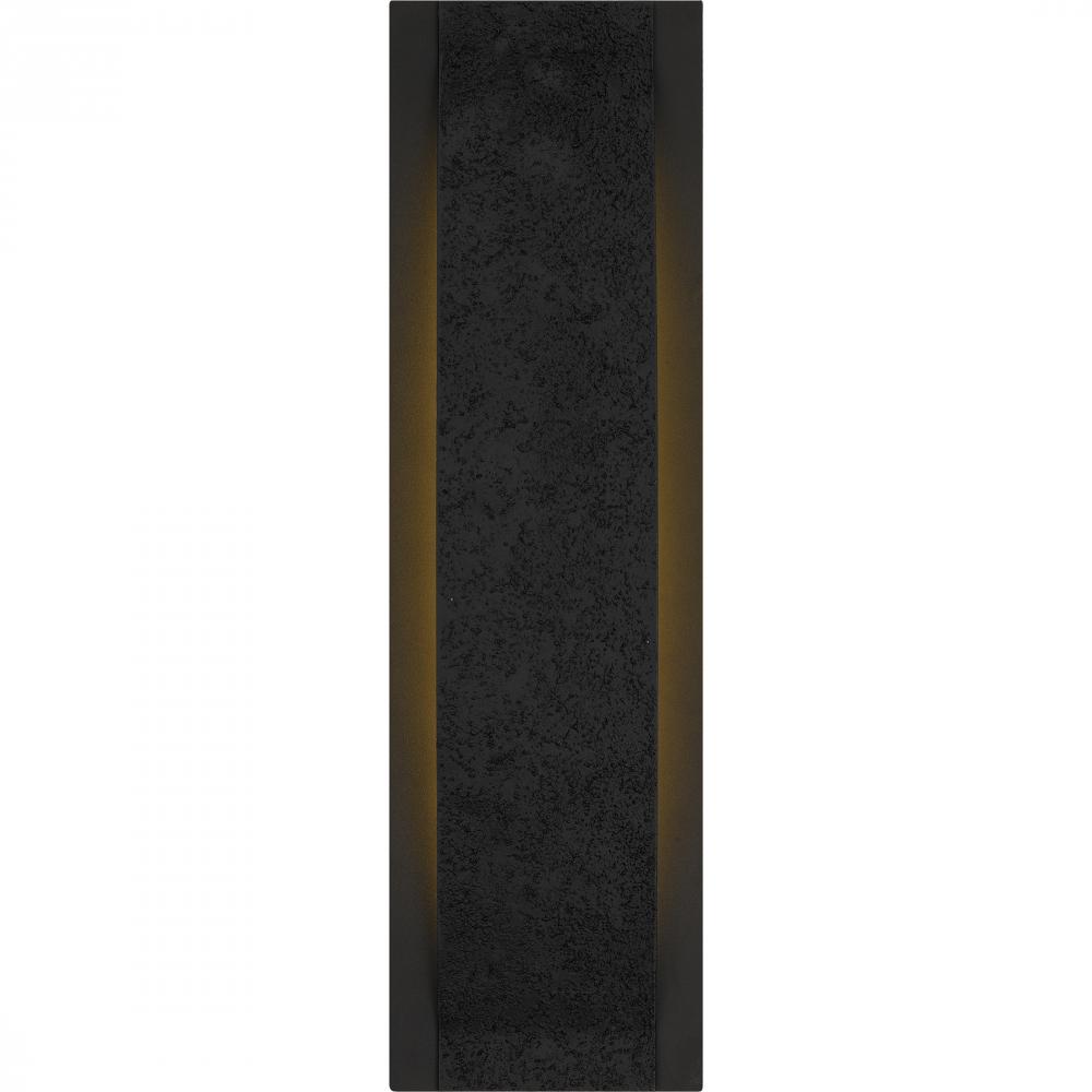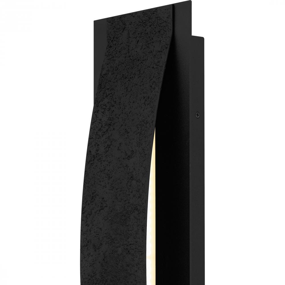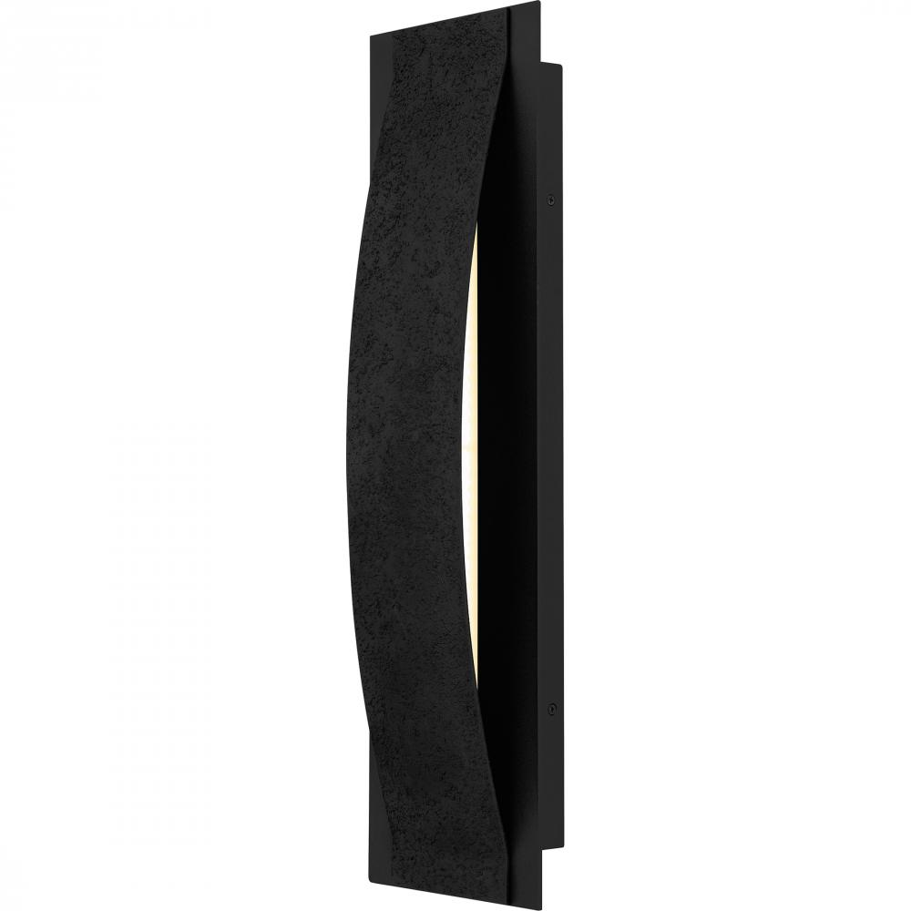 The Onyx outdoor wall sconce adds a touch of contemporary luxury to your homes exterior. The gently curved silhouette is finished in a sophisticated earth black and complemented by a unique textured front panel that resembles concrete. This textural detail