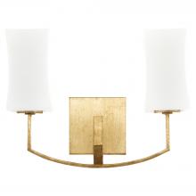 The Ayala series of chandeliers, wall mounts and sconces boasts clean lines and soft curves contrasted by right angles. The sconce's slim backplate supports a rectangular prism that supports two satin opal glass shades with a slightly flared design at the top and bottom, housing a candelabra socket. Choose from matte black or gold leaf finishes.