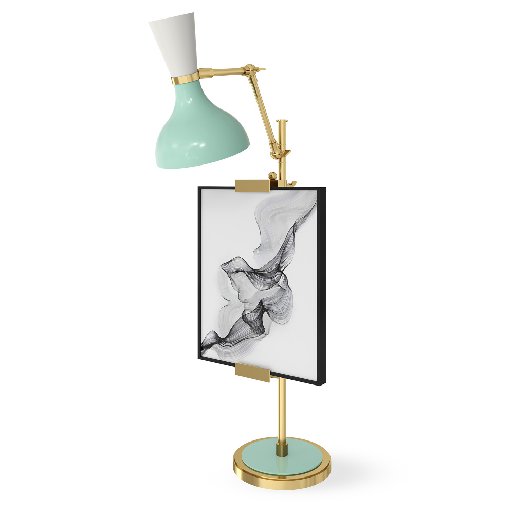 Modern Brass Table Easel w/ Mint and Lily Painted Shade