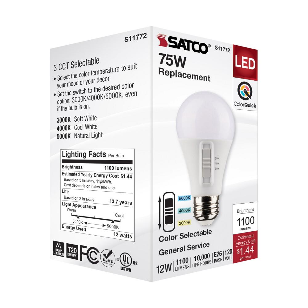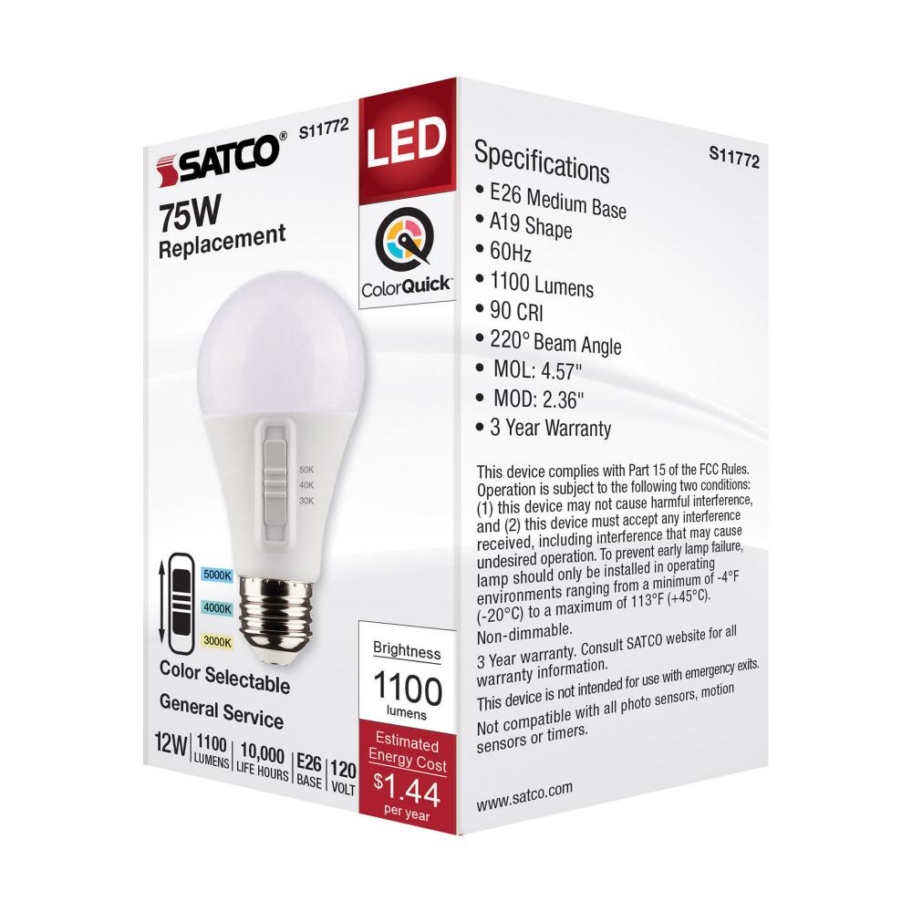 Illuminate any space with ease using SATCO NUVO's 12W A19 lamps with E26 base and ColorQuick technology. These versatile lamps allow you to choose the perfect color temperature for any room, creating an atmosphere that suits your mood. Whether you want
