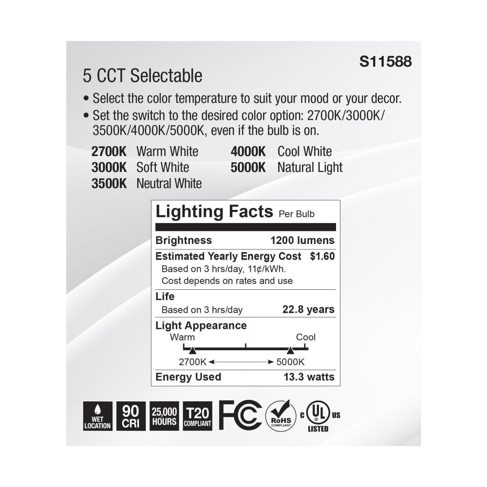 13.3 Watt PAR38 LED; Medium Base; Silver Finish; CCT Selectable; 120 Volt; 25 Degree Beam Angle