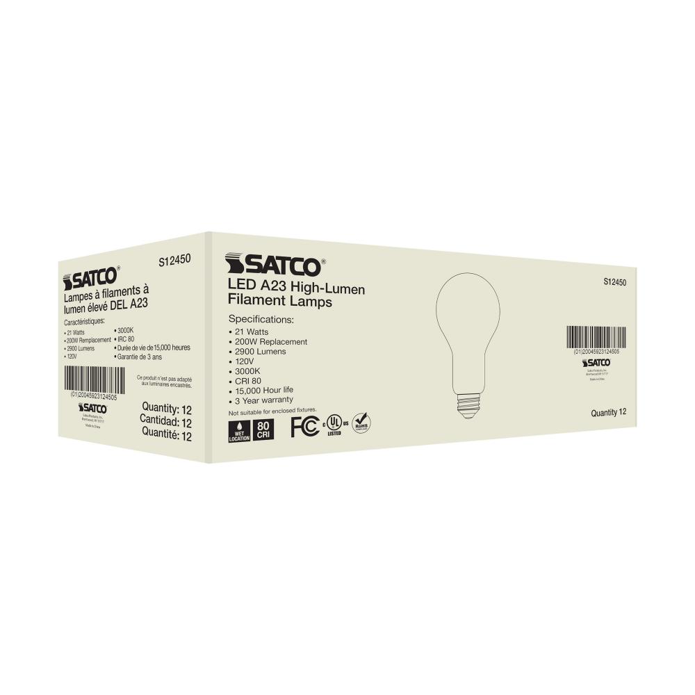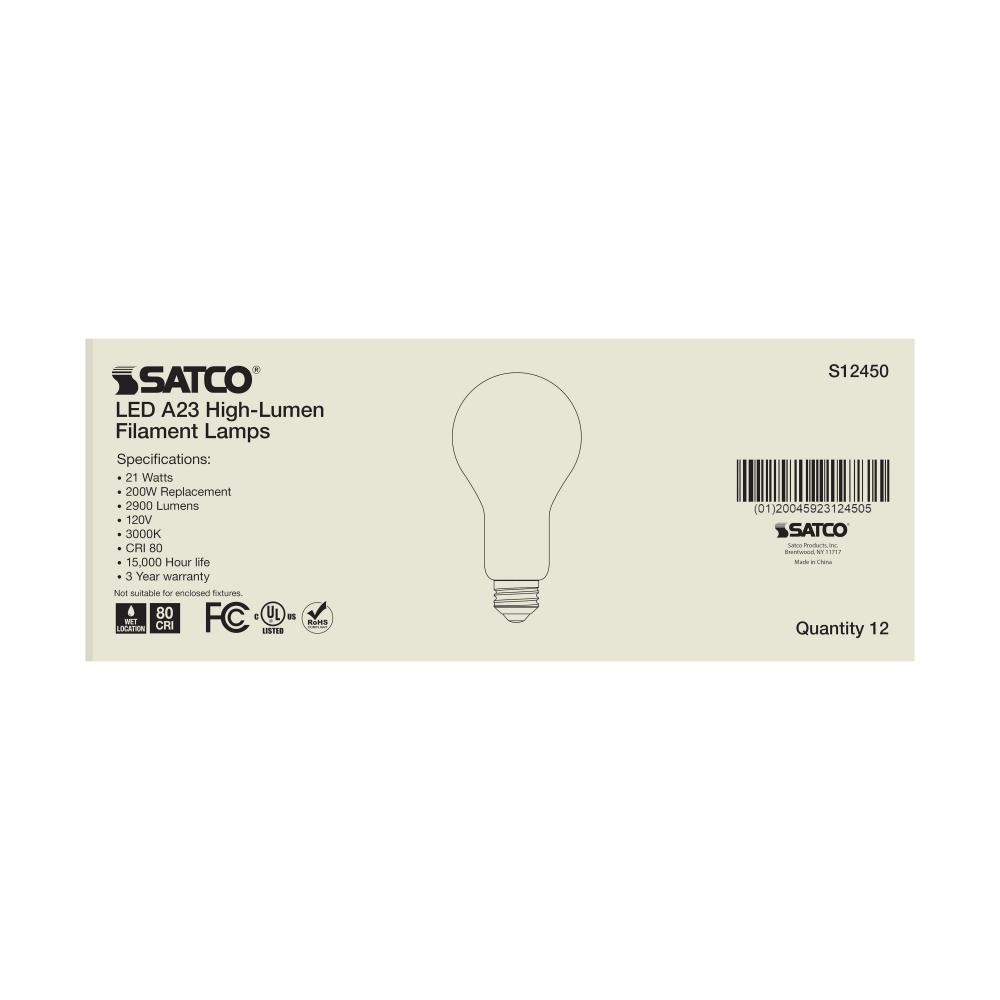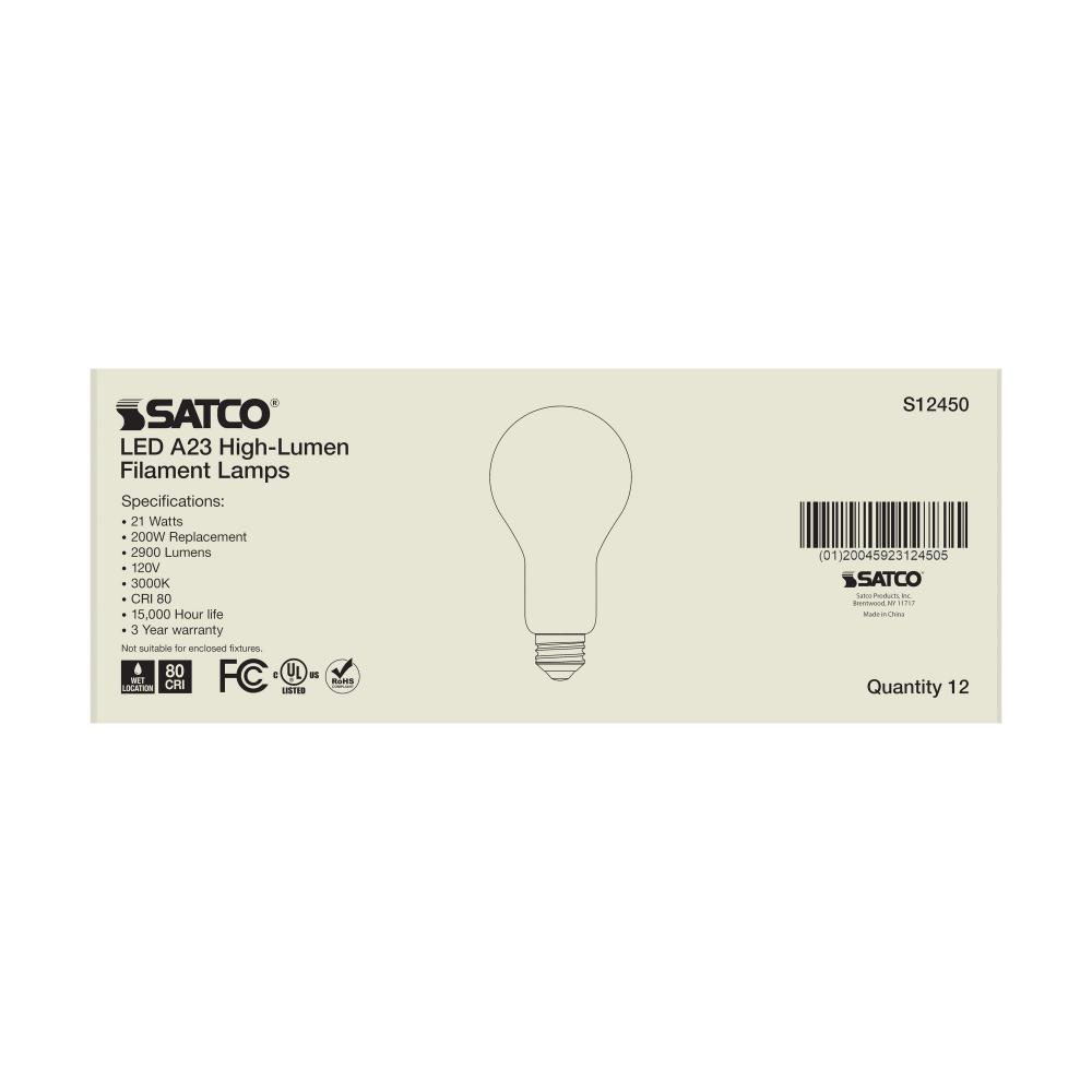 Satco's S12450 21-watt LED lamp is traditional, yet contemporary with its sleek finish and energy saving LED technology. Elegantly illuminate any room in the house with this frost finished bulb. Sophisticated and modern, this lamp delivers 15,000 hours