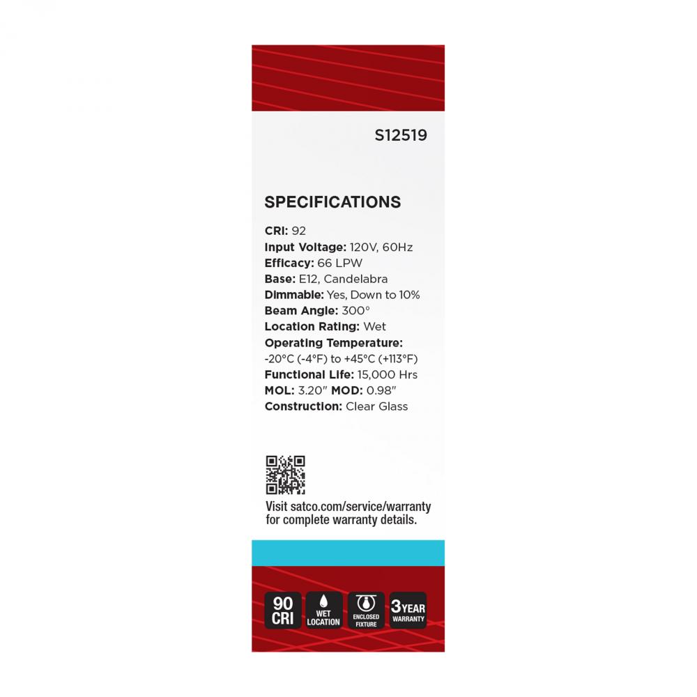 Satco's S12519 2.8-watt, LED lamp is traditional, yet contemporary with its vintage style and energy saving LED technology. Elegantly illuminate any room in the house with this dimmable, clear bulb. Sophisticated and modern, this lamp delivers 15,000 h