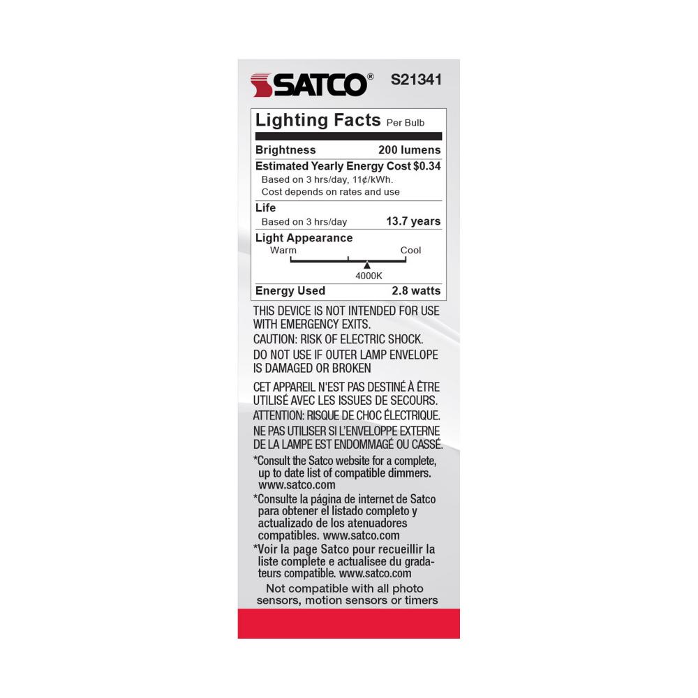 Satco's S21341 2.8-watt, LED lamp is traditional, yet contemporary with its vintage style and energy saving LED technology. Elegantly illuminate any room in the house with this dimmable, clear bulb. Sophisticated and modern, this lamp delivers 15,000 h
