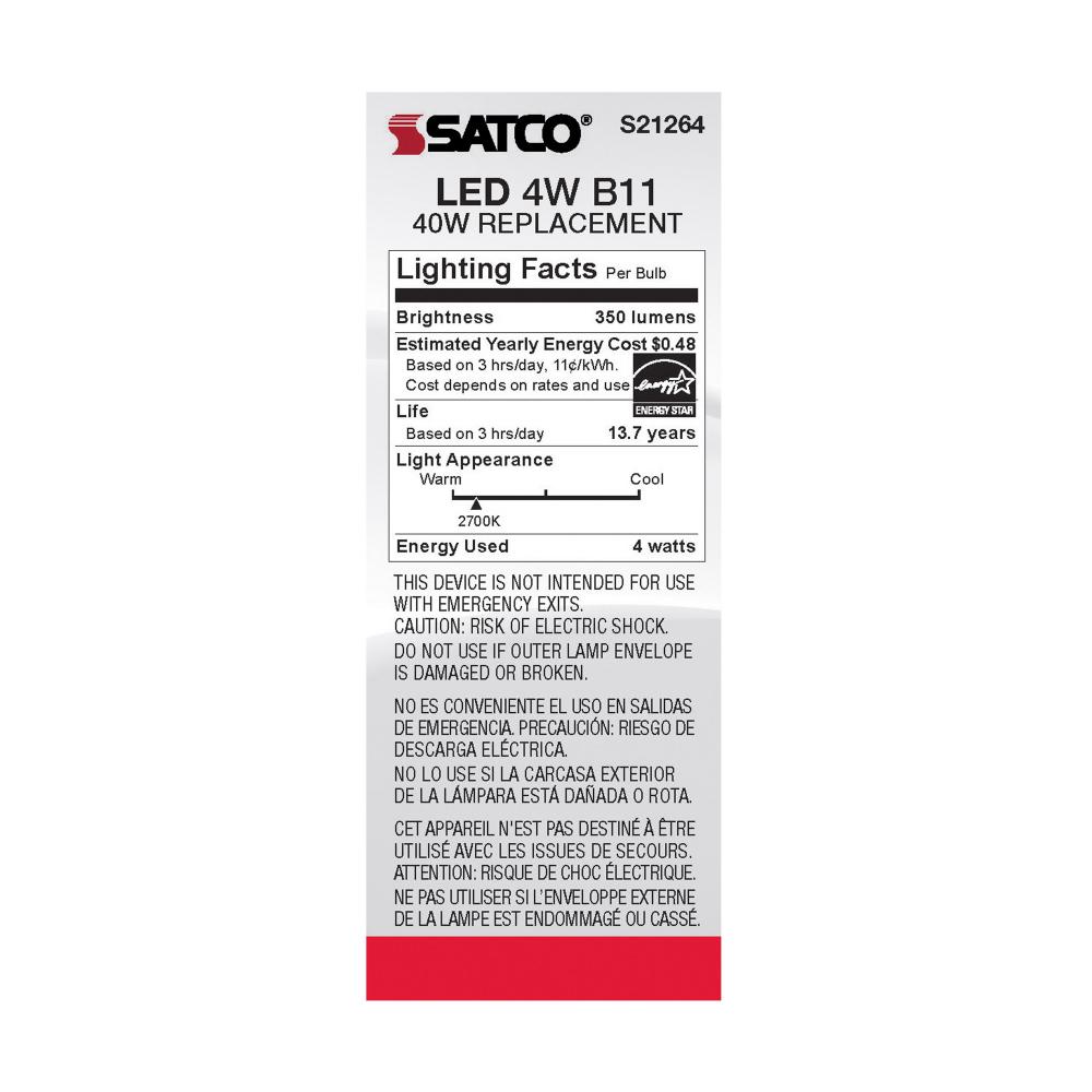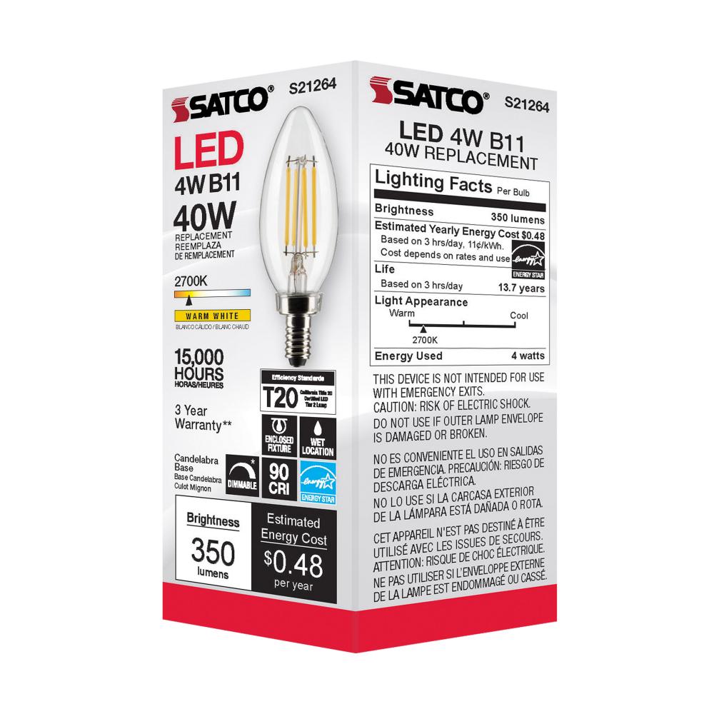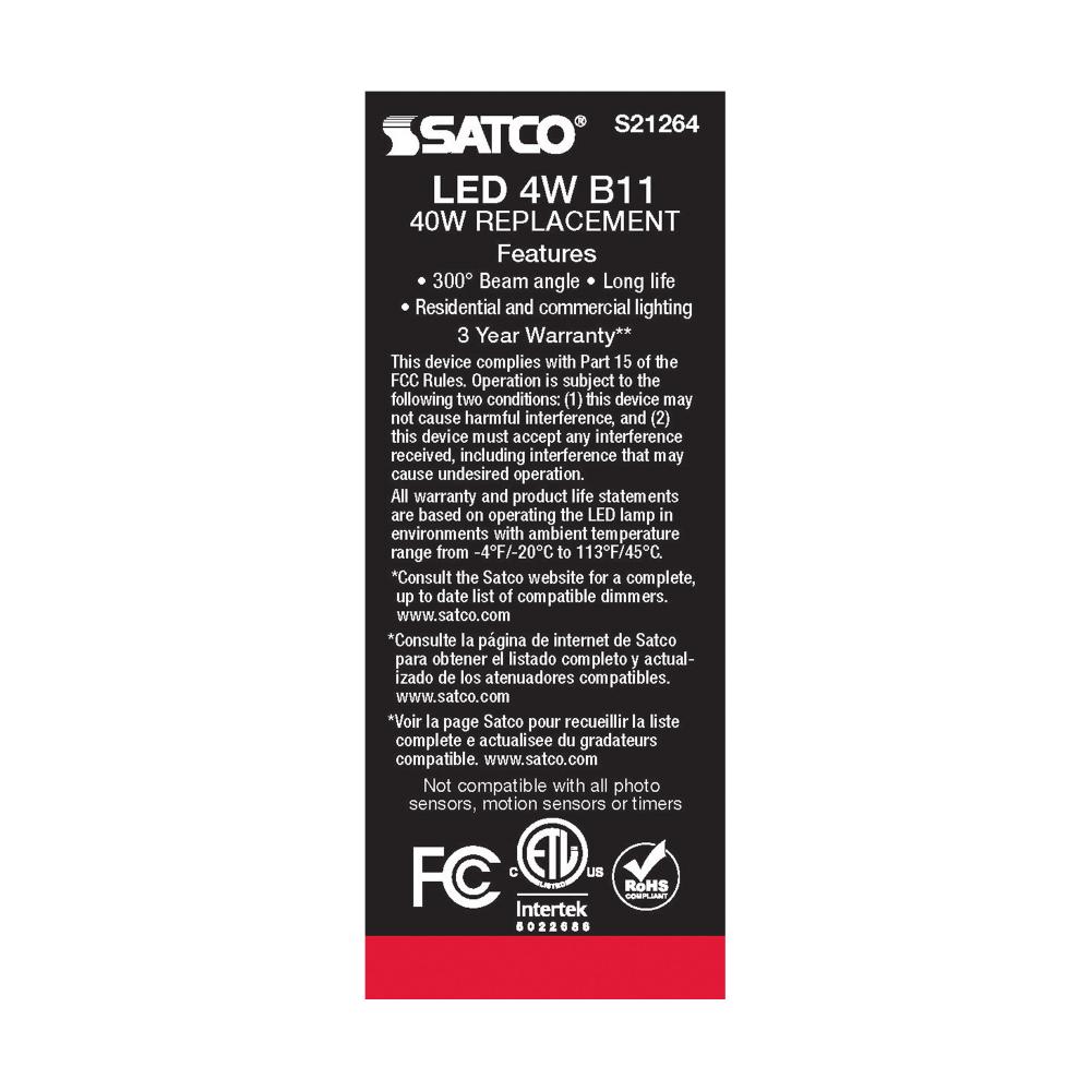 Satco's S21264 4-watt LED lamp is traditional, yet contemporary with its vintage style and energy saving LED technology. Elegantly illuminate any room in the house with this dimmable, clear bulb. Sophisticated and modern, this lamp delivers 15,000 hour