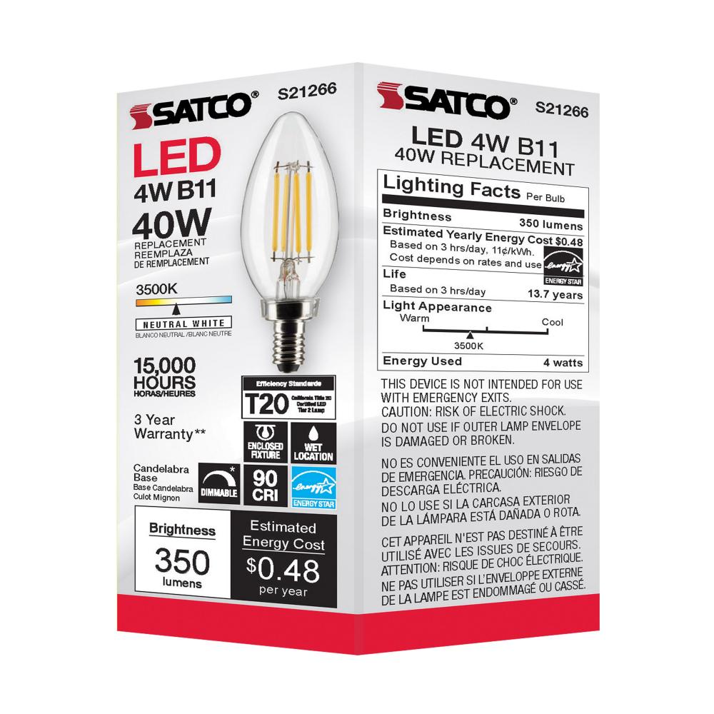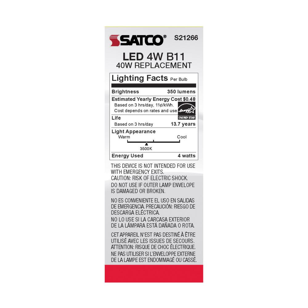 Satco's S21266 4-watt LED lamp is traditional, yet contemporary with its vintage style and energy saving LED technology. Elegantly illuminate any room in the house with this dimmable, clear bulb. Sophisticated and modern, this lamp delivers 15,000 hour