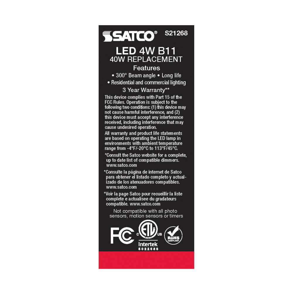 Satco's S21268 4-watt LED lamp is traditional, yet contemporary with its vintage style and energy saving LED technology. Elegantly illuminate any room in the house with this dimmable, clear bulb. Sophisticated and modern, this lamp delivers 15,000 hour