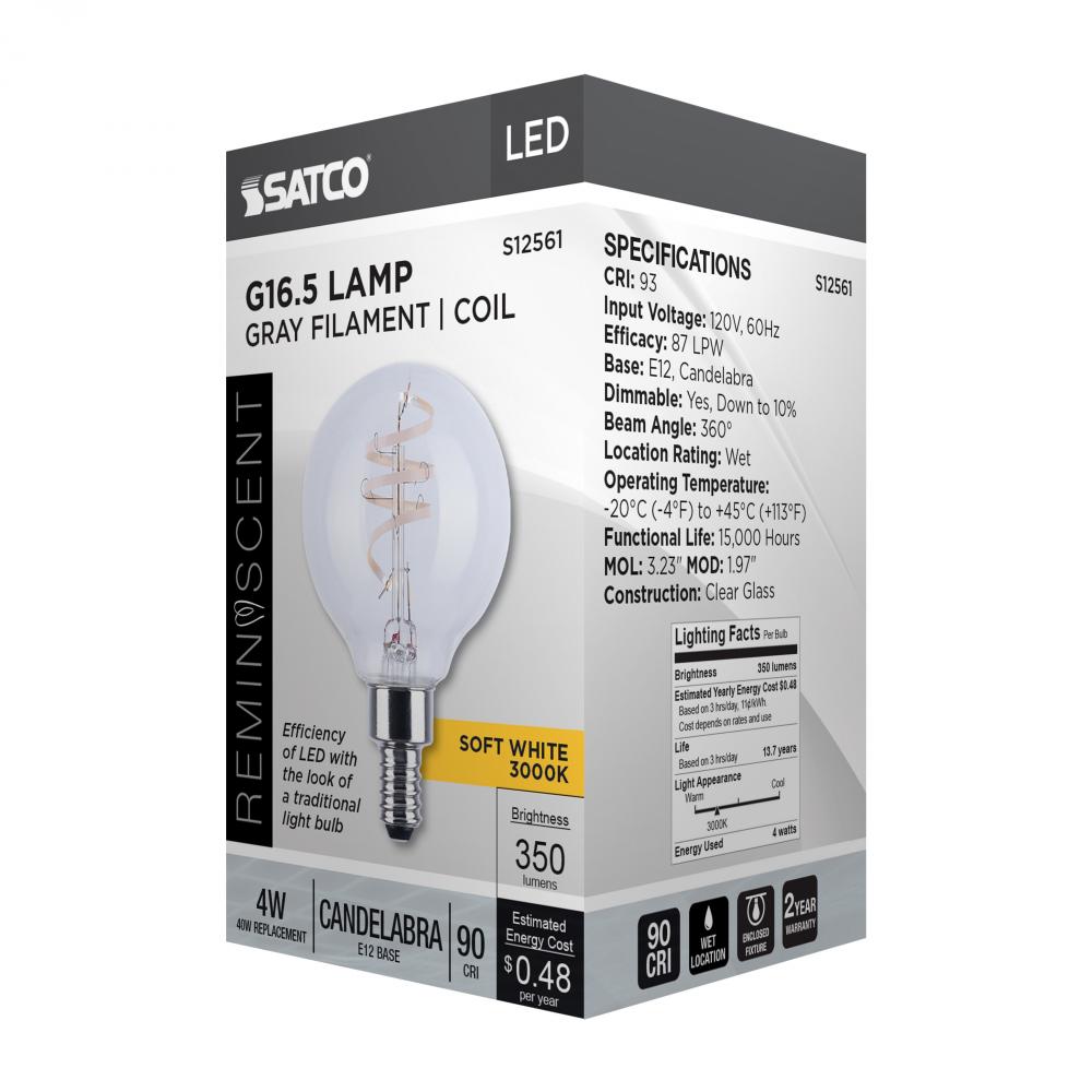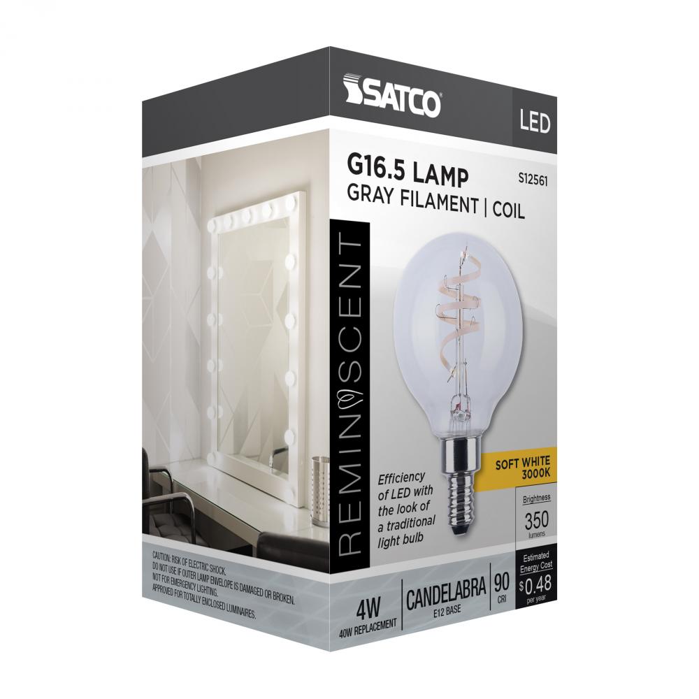4 Watt G16.5 LED; Reminiscent; Flex Gray Coil Filament; E12; 3000K; 120 Volt