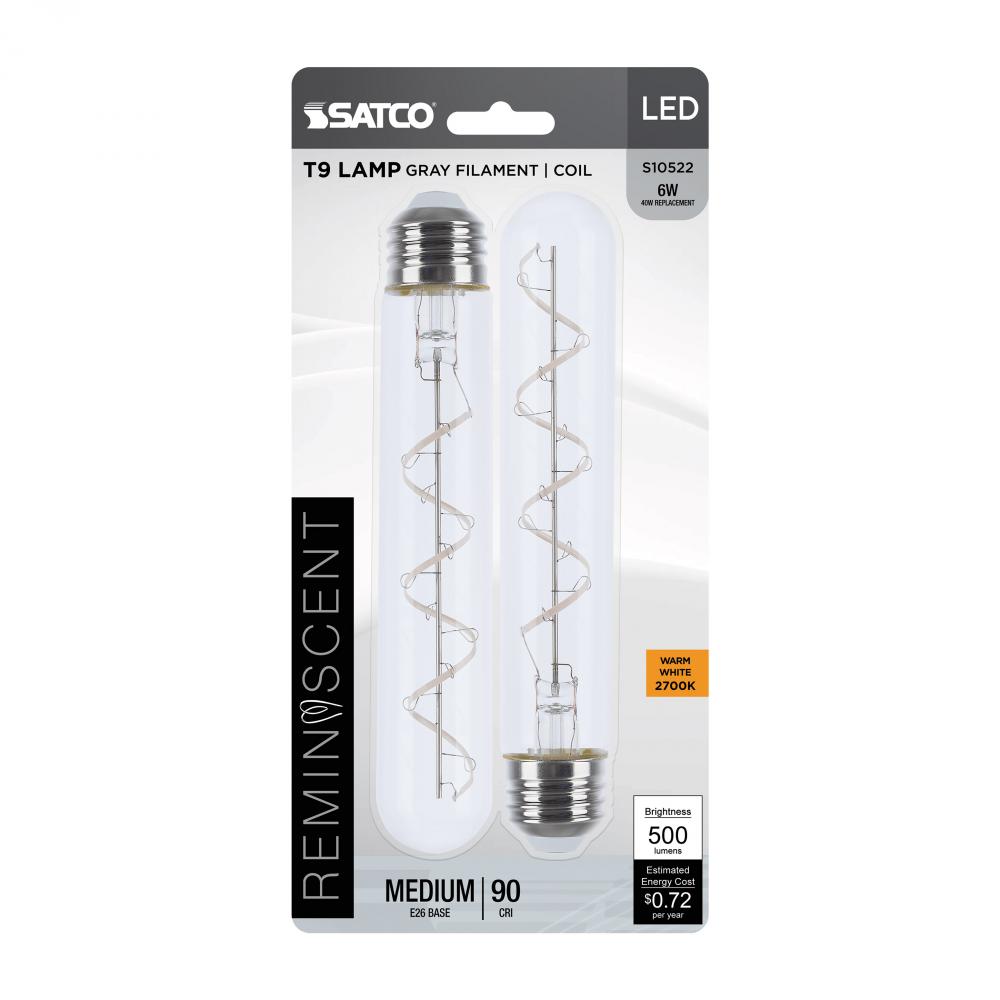 SATCO NUVO's S10522 T9 Reminiscent lamp offers the traditional look of tungsten filament bulbs with the energy savings of LED technology in a convenient 2-pack. The gray coil filaments provide a clean aesthetic, blending in with many current fixture an