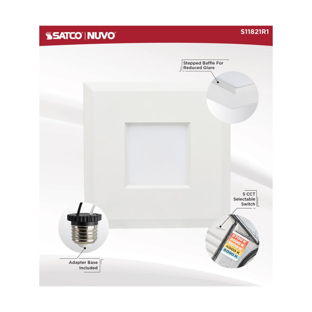 SATCO NUVO's S11821R1 LED Retrofit Downlight is the easy way to convert traditional recessed lighting to LED. This 5/6-inch square fixture is sized for, and comes ready with, an E26 base adapter for instant illumination when installed with existing can