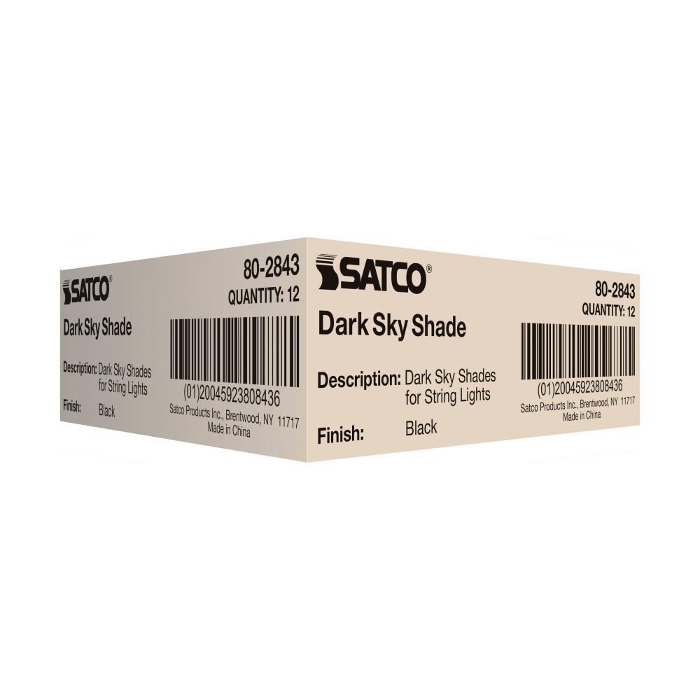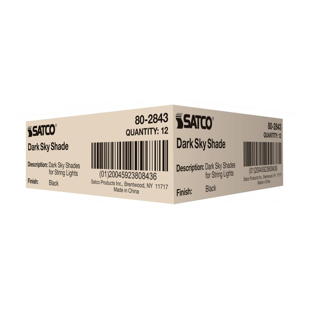 Enhance the longevity and aesthetic charm of your patio string lights with SATCO NUVO's #80-2843 stylish string light shades. These covers not only serve as a protective barrier from the elements, but they also enhance the visual charm of your outdoor space, imparting a sophisticated touch to your string lights. Designed to reduce unwanted upward illumination, these covers are crafted from durable, textured steel. The sleek black outer finish seamlessly integrates the fixture into your surroundings, while the inner white finish reflects light downward, ensuring optimal illumination precisely where it's needed. Compatible with SATCO Smart, remote-controlled, and traditional string lights, these shades offer a versatile solution for various lighting setups. Elevate your outdoor ambiance while safeguarding your string lights with our string light shades.