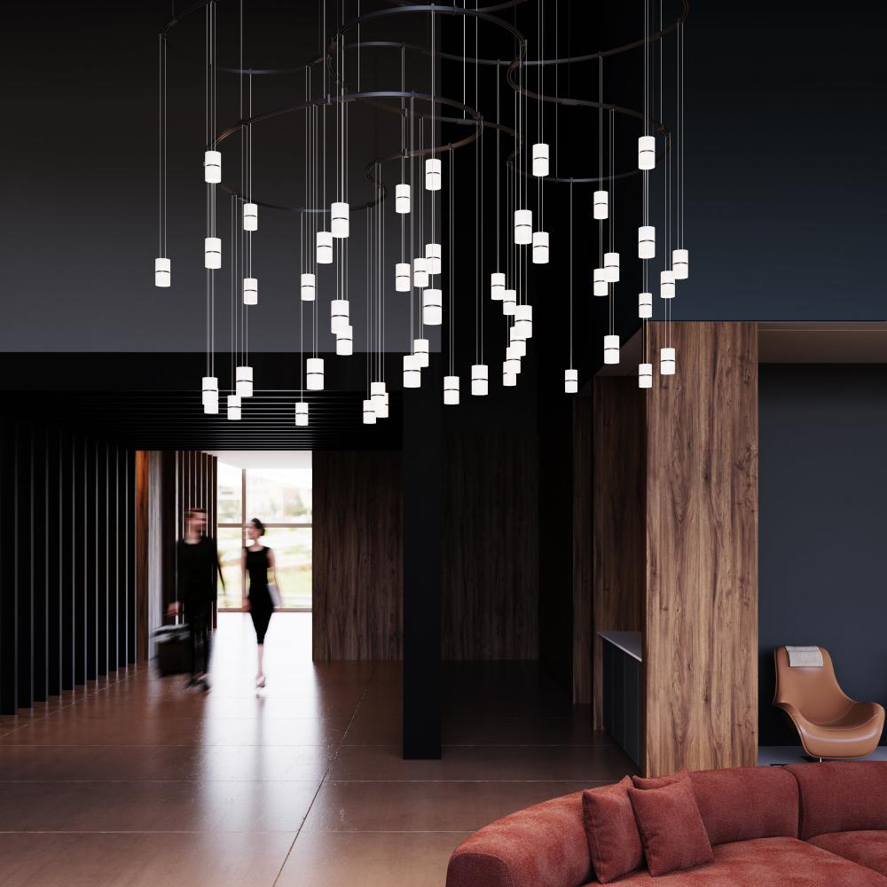 3-Tier Path Matrix w/ Height Adjustable Etched Through Cylinder Luminaires