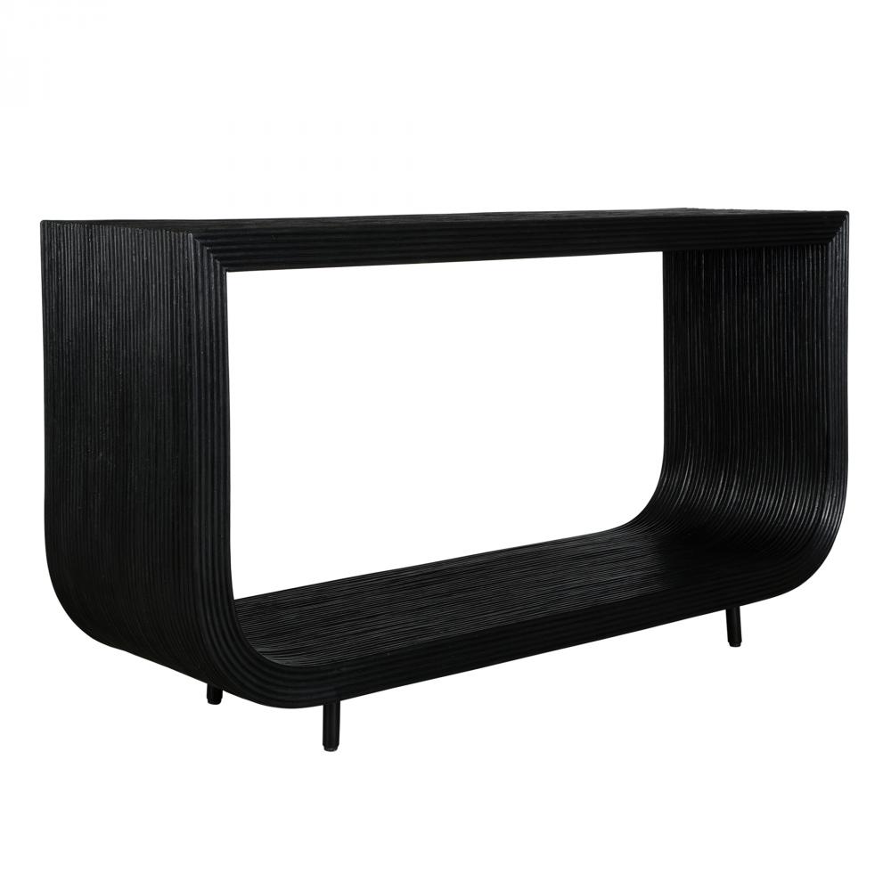 This Console Table Seamlessly Blends Modern Design With Natural Elements. The Console Features Sleek Natural Rattan In A Black Finish That Adds A Contemporary Touch To Any Room.