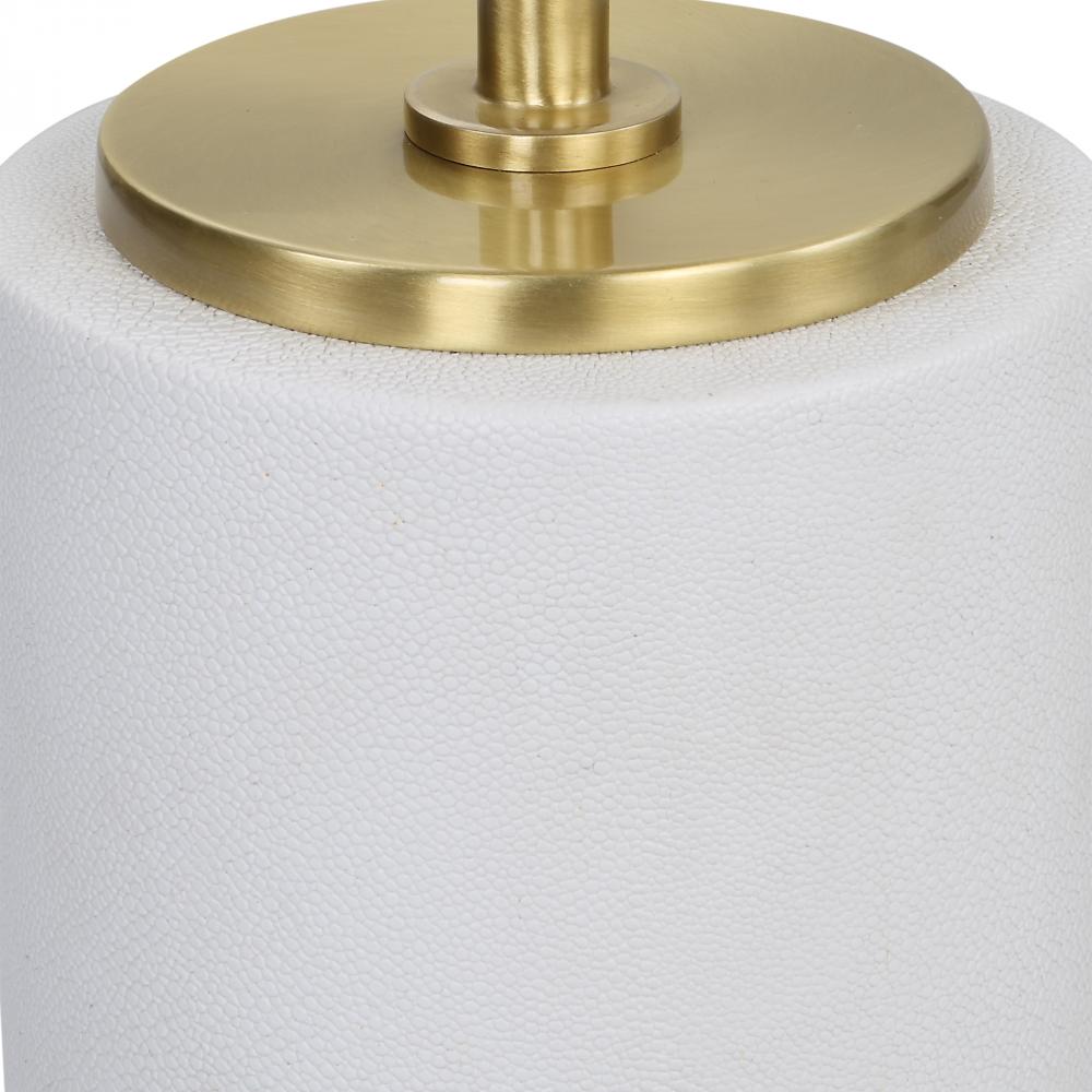 Stylish and Sophisticated, This Round Accent Table Features A Fresh White Faux Shagreen Base Paired with An Iron Support in Rich Brushed Brass and A Beveled Mirror Top.