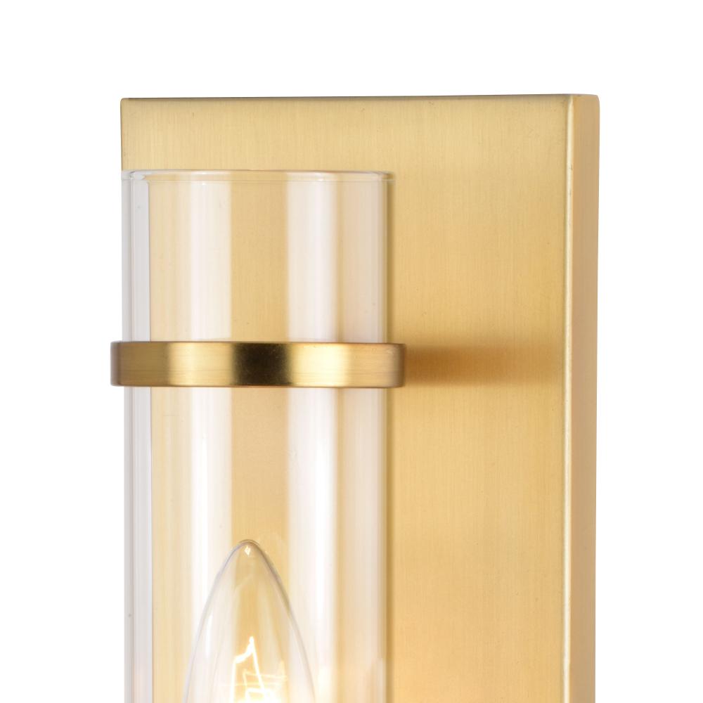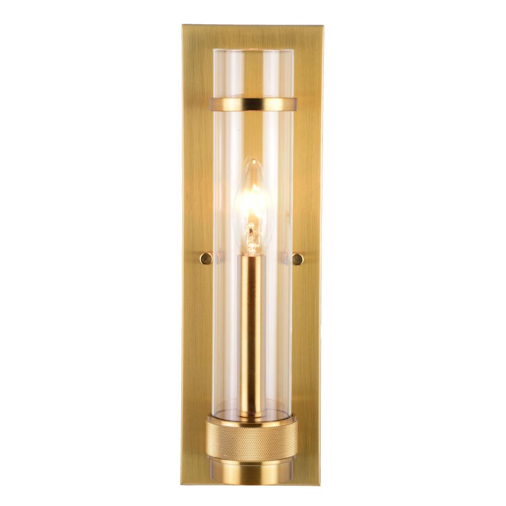 The Bari collection is a blend of simplicity and sophistication featuring a contemporary knurled ring and a full back plate. Ample light emanates from the elongated clear glass shade creating a dramatic effect. Pair with a clear filament bulb for the optimal look. This damp rated wall sconce is ideal for bathrooms, hallways, stairways, and bedrooms.