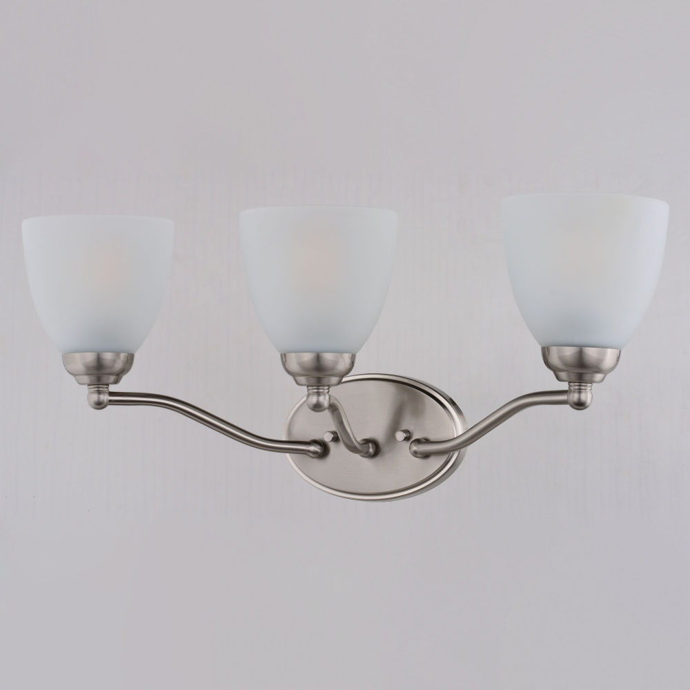Transform your bathroom's ambiance with the Bellwood 3-light vanity, a perfect blend of classic design and modern sophistication. The satin nickel finish provides a timeless feel, while the frosted glass shades add a touch of vintage charm, diffusing a warm, inviting light. This wall light reimagines traditional style with thoughtfully updated details, including classic sphere accents and graceful tulip glass shades. Damp-rated for lasting performance, the Bellwood vanity is designed to withstand the moisture of bathroom environments. Enhance your daily routine with a fixture that seamlessly bridges traditional charm and modern functionality.