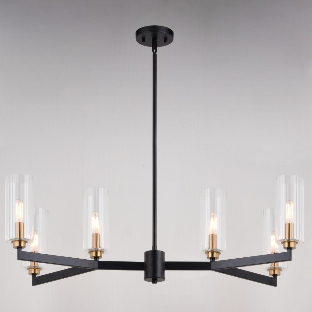 Claremont 31.25-in. 6 Light Chandelier Matte Black with Autumn Brass