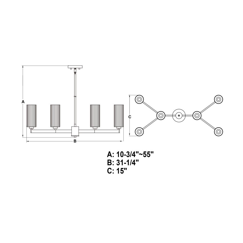 Bring elegance to your dining room or kitchen island with the Claremont chandelier's contemporary yet transitional touch. Its branching frame, clear ribbed glass shades, and two-tone finish create a perfect blend of style and functionality. Add vintage-style Edison bulbs for a touch of nostalgic charm and a warm inviting glow.