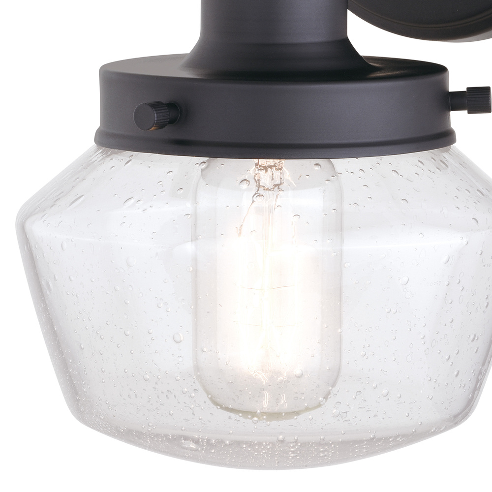 Farmhouse charm meets modern schoolhouse in the Collins collection. The beautiful clear seeded glass shades and matte black housing will blend into many decors. Combine that with vintage Edison style filament bulbs to complete the look. Rated for indoor and outdoor use, these fixtures can be used in any area of your home.
