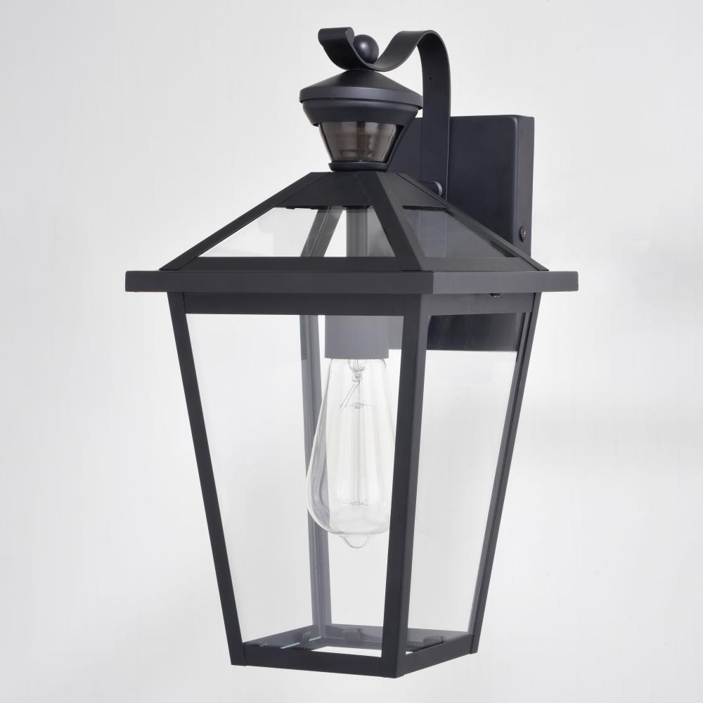 This traditional outdoor wall lantern in matte black finish with clear glass from the Derby collection will add a touch of sophistication to the exterior of your home. Ideal for your porch, entryway, garage, or any other area of your home. Dualux patented dual-level security lighting is outdoor lighting made smarter, brighter light at dusk, dimmer at night, brightening instantly when it detects motion. Designed to reliably and effortlessly enhance your home’s beauty, security and efficiency from dusk to dawn with its built in motion sensor and photocell. This fixture works with any dimmable bulb and many dimmable LED bulb models.