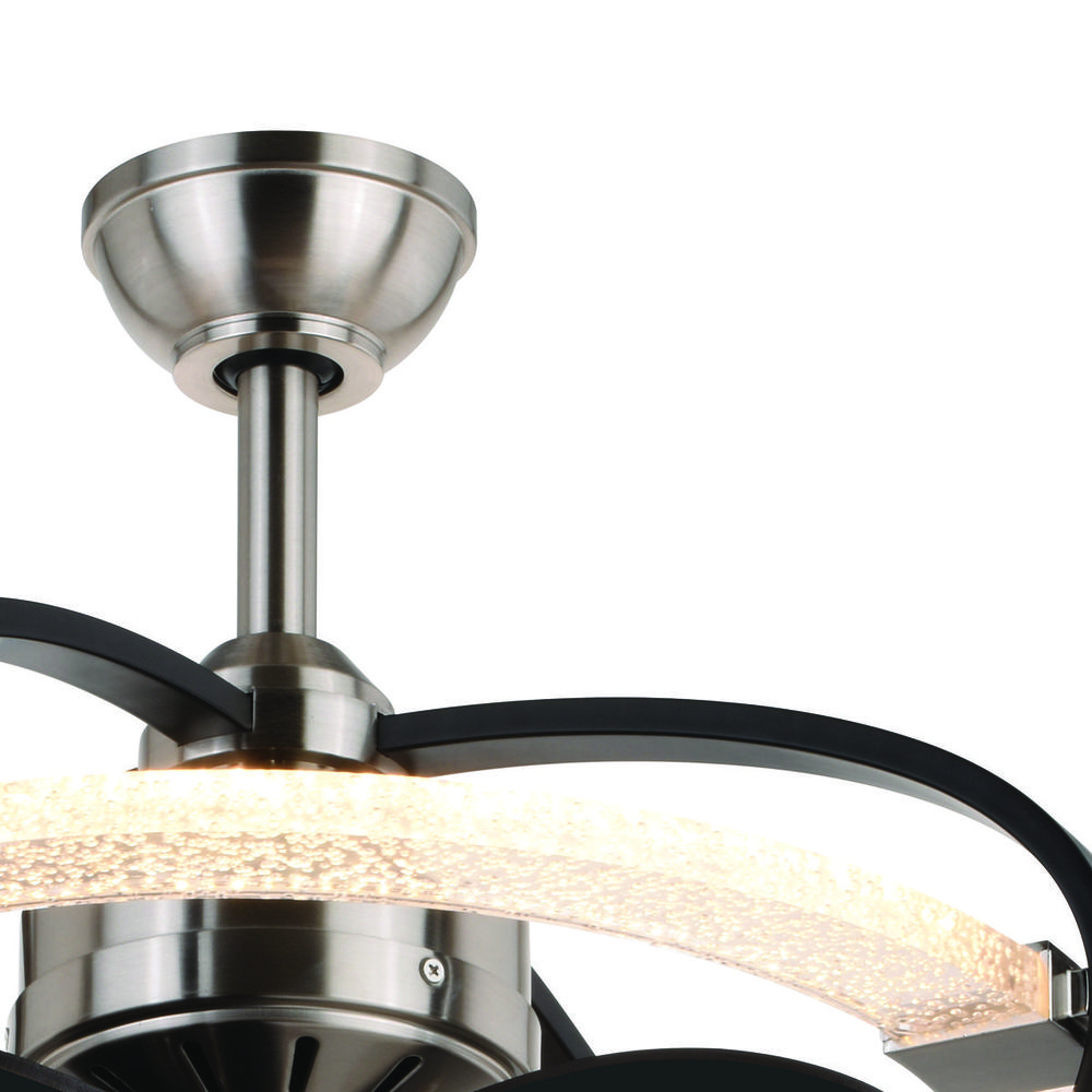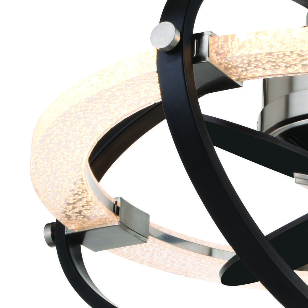 Fandelier in satin nickel and matte black with clear bubble acrylic integrated LED light kit included