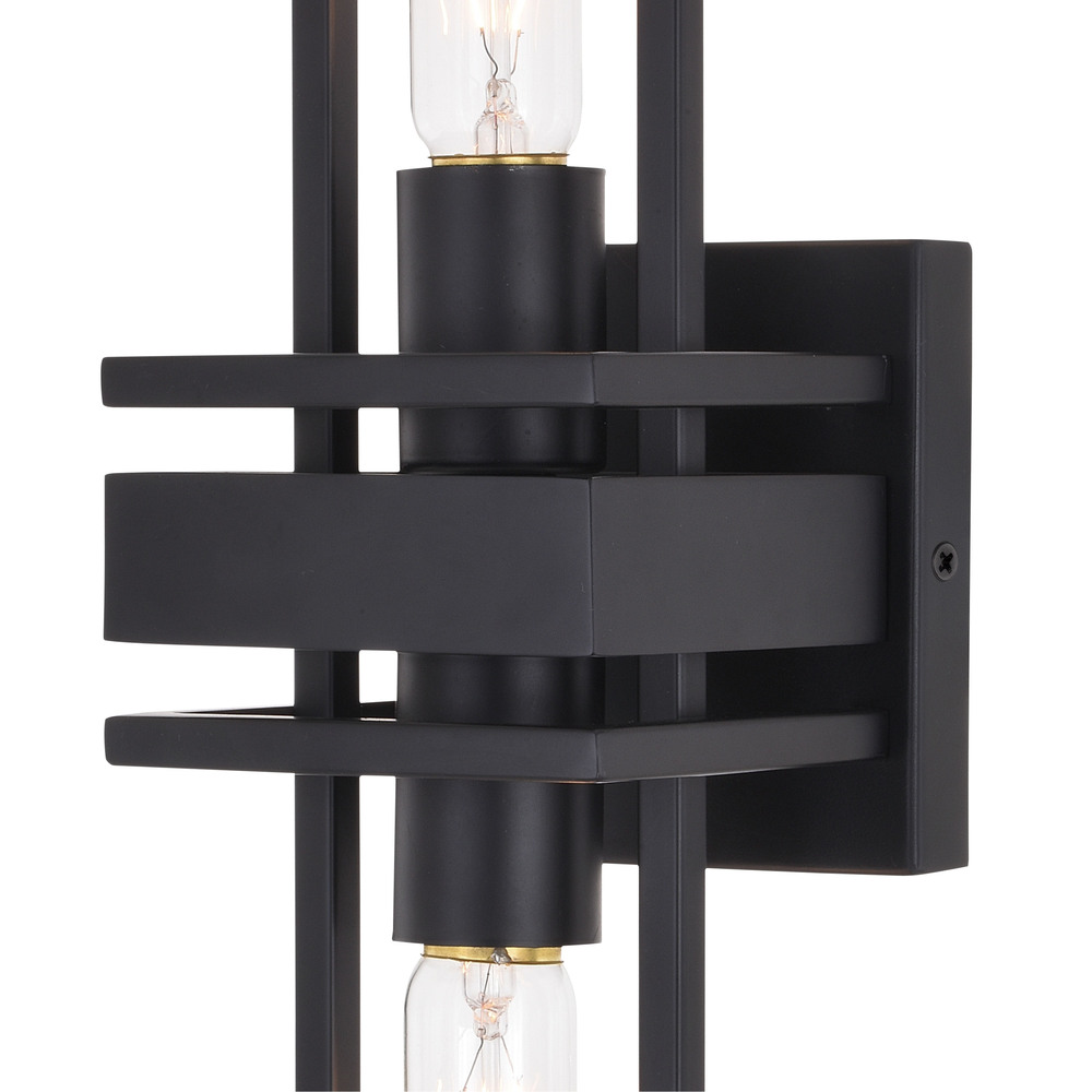 A bold open frame creates geometric statement in the Marquis collection. Elongated structures in a satin nickel or black finish offer two distinct options that will bring a contemporary feel to any space. Combine that with vintage Edison style filament bulbs to complete the look. This wall sconce is ideal for bathrooms, hallways, stairways, foyers, and more.