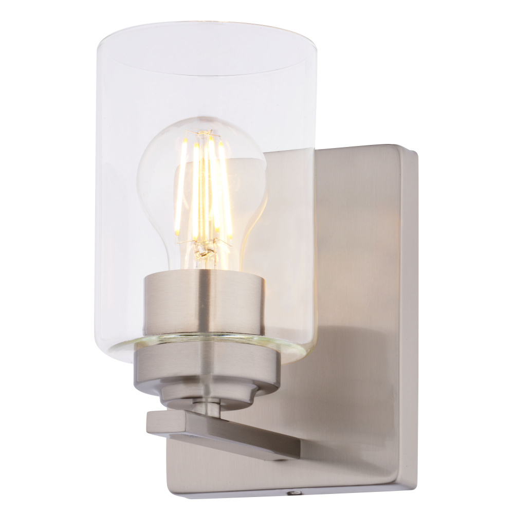 Light, Vanity, Glass, Wall, Bathroom, Sconce, Shade, LED, Bath, Lighting, Clear, Nickel, Fixture, Dimmable, Wide, Mount, Transitional, Satin, Steel, Mirror, Mounted, The, Room, In, Cylinder, Over