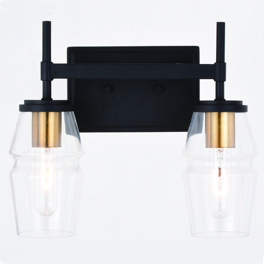 Warren 2 Light Vanity Light Matte Black and Brushed Brass