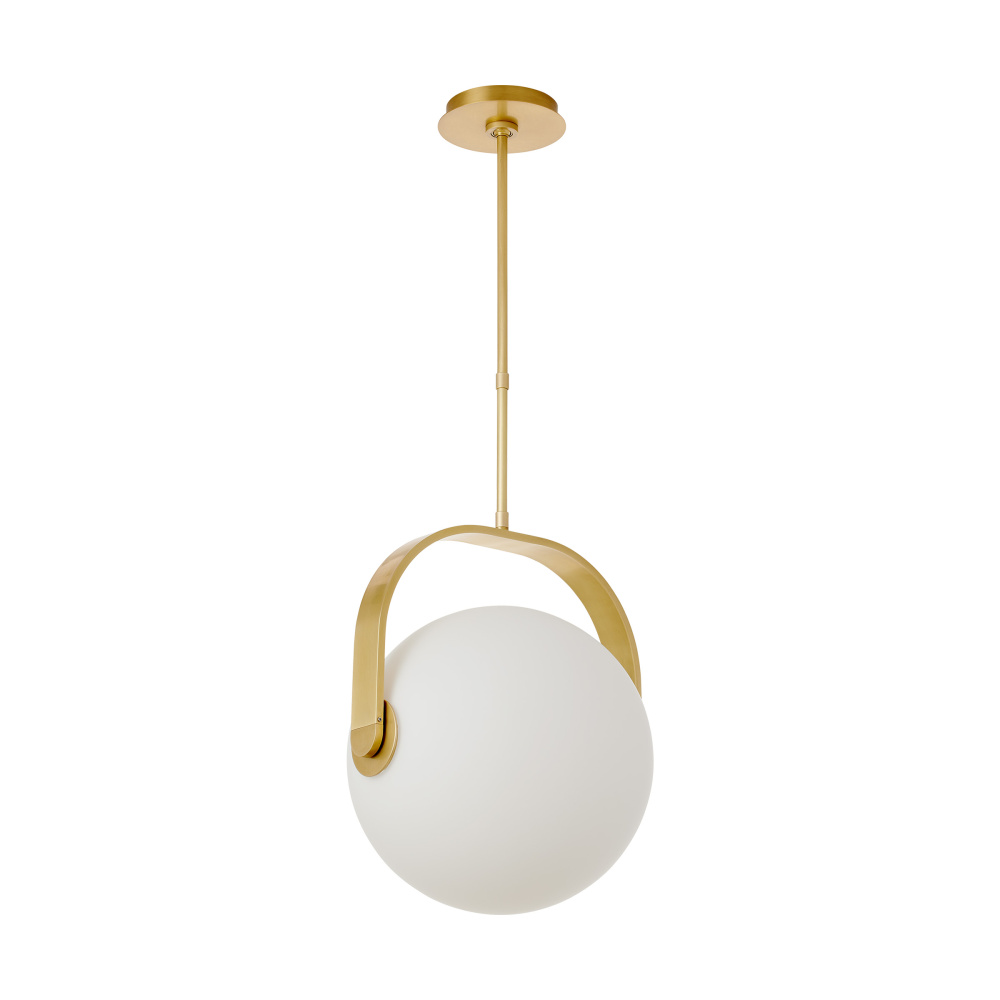 Inspired by mid-century design, the Fues Pendant celebrates the spherical geometry with center glass diffuser