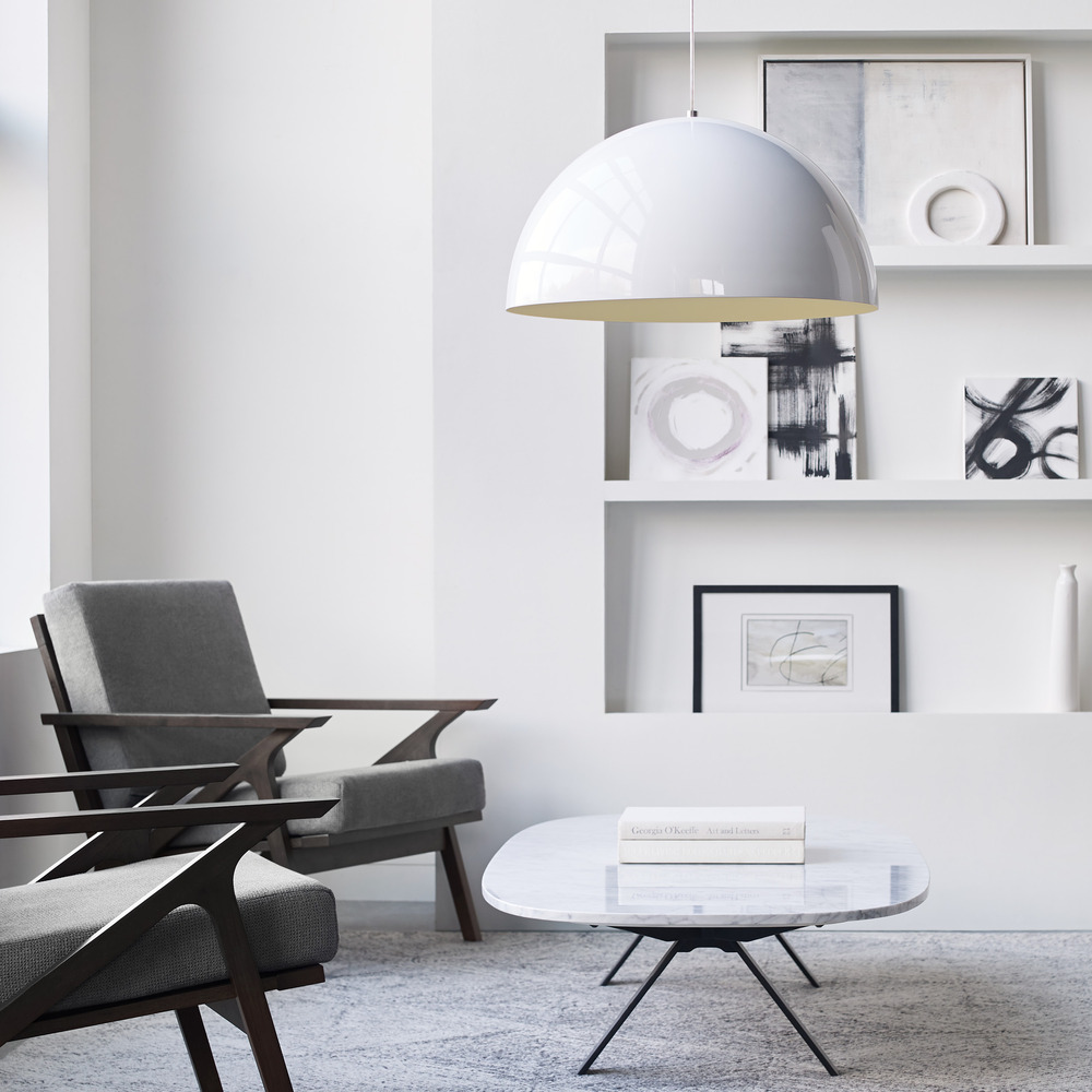 The Powell Street Pendant by Visual Comfort Modern Collection is sleek and contemporary with its attractive glossy finish. This high-end luxurious pendant features a high gloss finish to its exterior and two modern matte interior finishes. Choose between an array of color and finish combinations. Lamping options include energy efficient LED or no lamp. LED lamping is fully dimmable to create the desired ambiance in your special space. The Powell Street Pendant is ideal for kitchen island task lighting, conference room lighting and countless commercial application spaces.